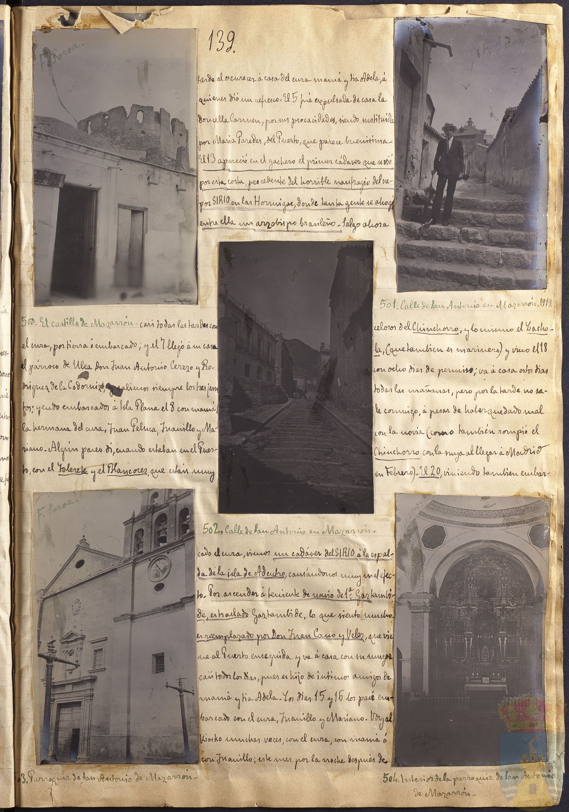 Fotografía 502: Calle de San Antonio en Mazarrón. Firmado a mano por F. Soroa. Tamaño: 10,5 x 6 cm.