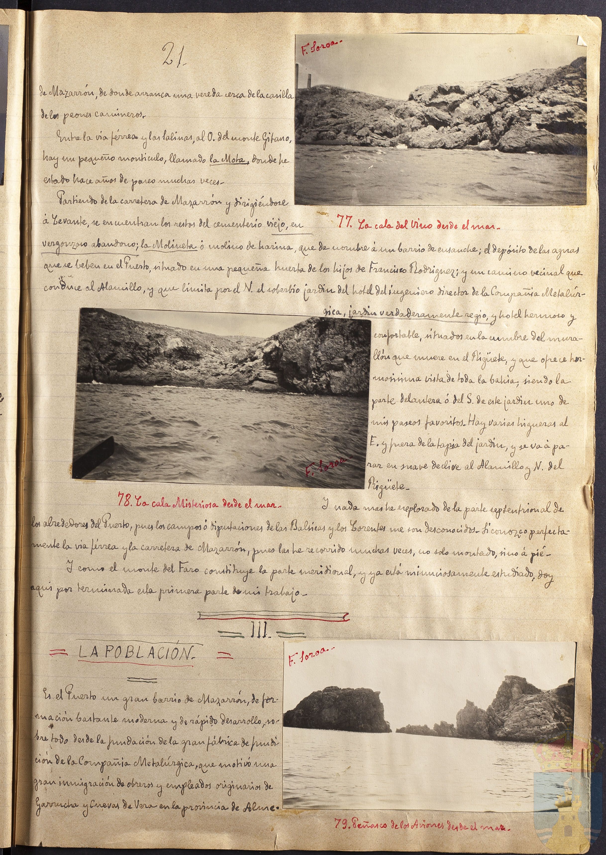 Fotografía 77: La cala del Vino desde el mar Firmado a mano por F. Soroa. Tamaño: 5,9 x 10,7 cm.