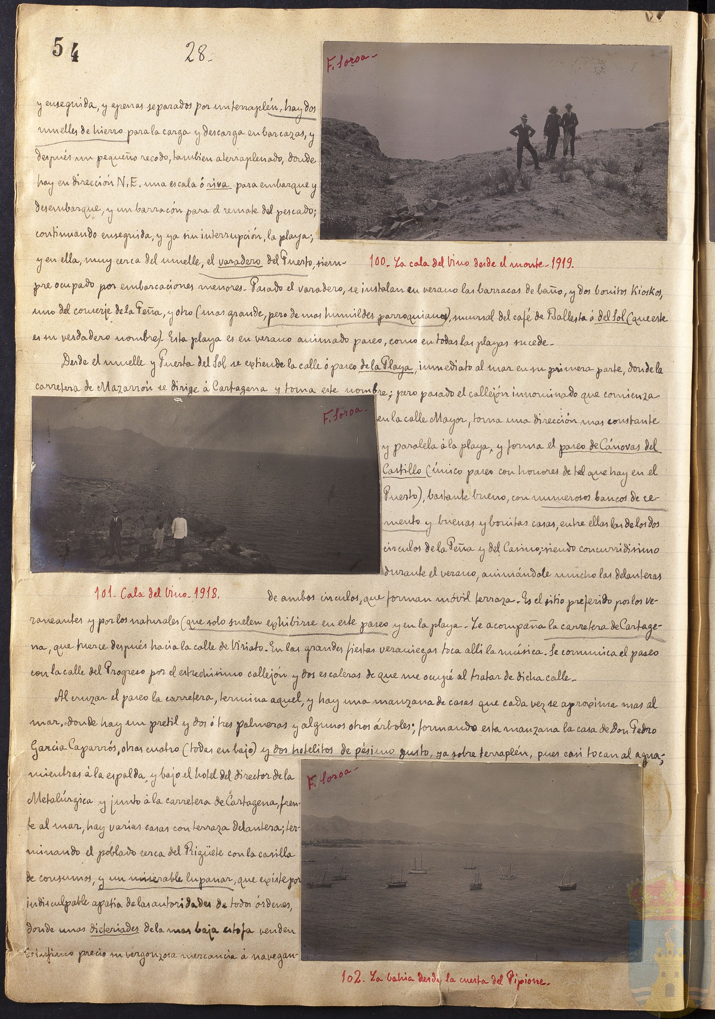 Fotografía 100:La cala del Vino desde el monte. 1919. Firmado a mano por F. Soroa. Tamaño: 6 x 10,7 cm.