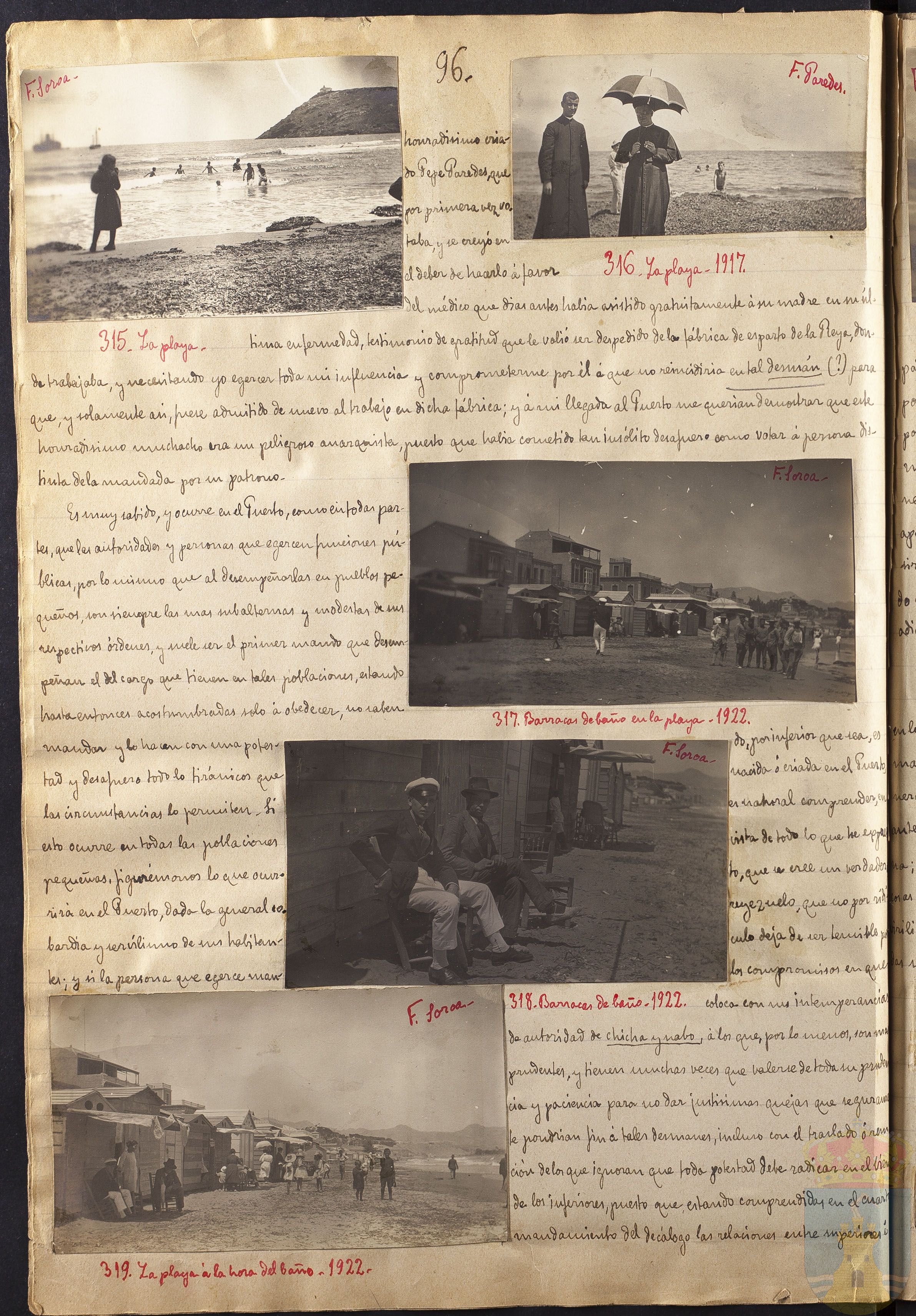 Fotografía 316: La playa. 1917. Firmado a mano por F. Paredes. Tamaño: 4,3 x 8,5 cm.