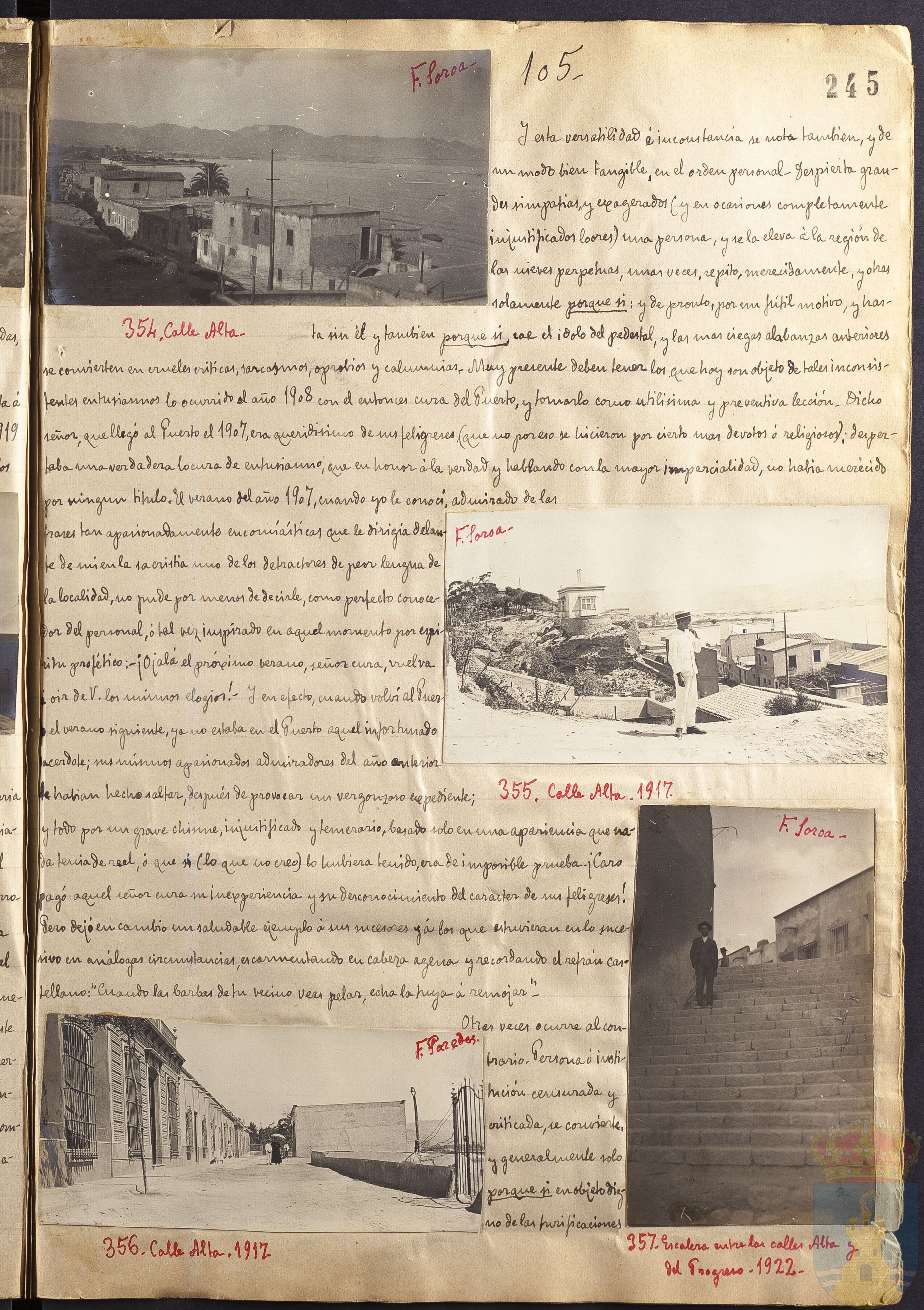 Fotografía 356: Calle Alta. 1917. Firmado a mano por F. Soroa. Tamaño: 5,6 x 10,8 cm.