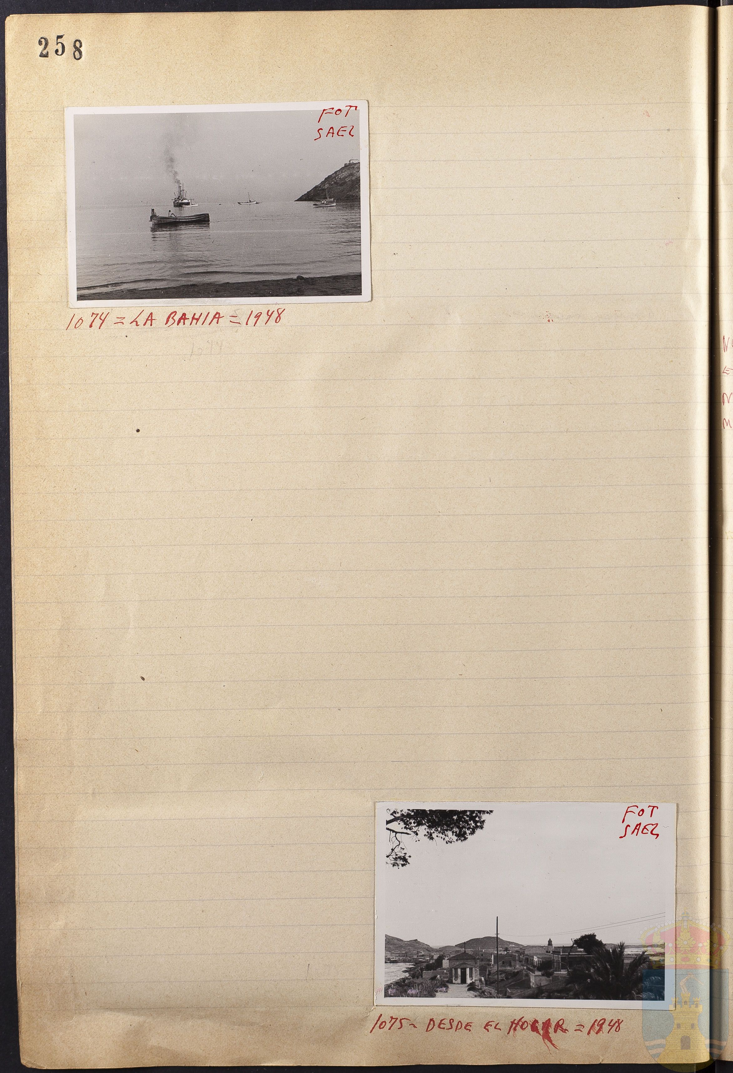 Fotografía 1074: LA BAHÍA =1948. Figura escrito a mano el origen de la fotografía: FOT. SÁEZ. Tamaño: 6 x 8,8 cm.