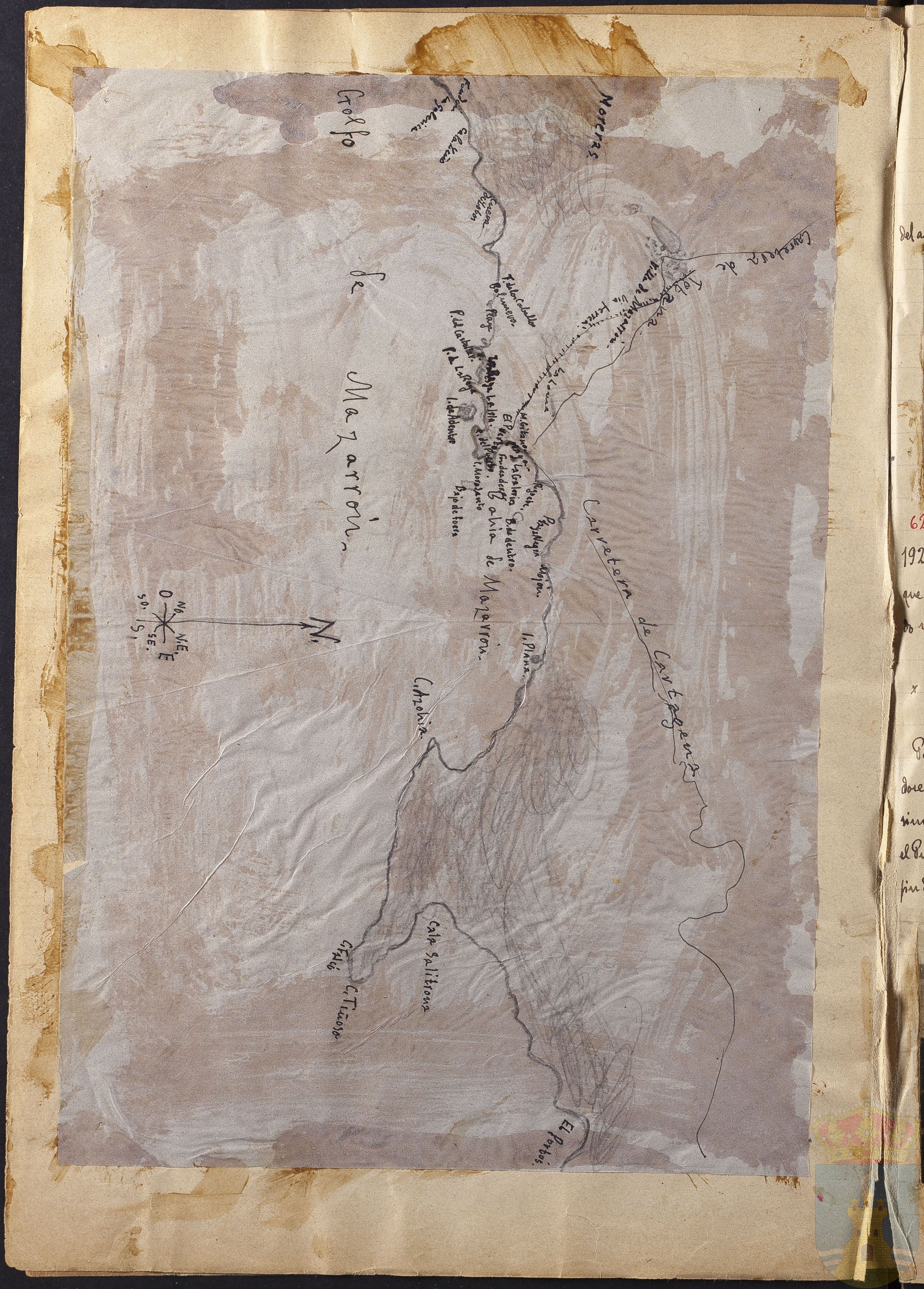 Mapa dibujado a mano del Puerto de Cartagena. No contiene información sobre su procedencia.