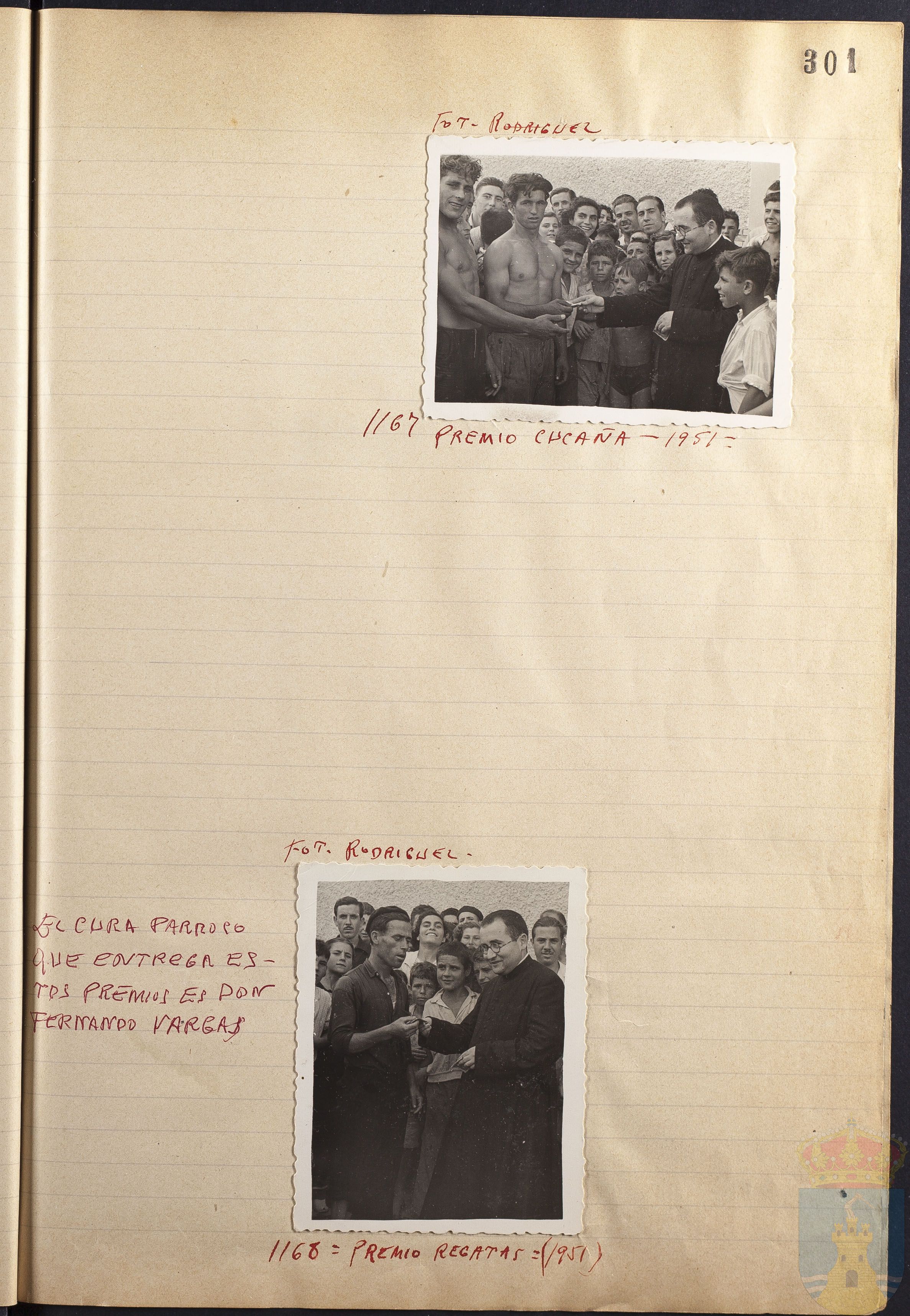 Fotografía 1168: PREMIO REGATAS =(1951). Figura escrito a mano el origen de la fotografía: FOT. RODRÍGUEZ. Tamaño: 9 x 7 cm.