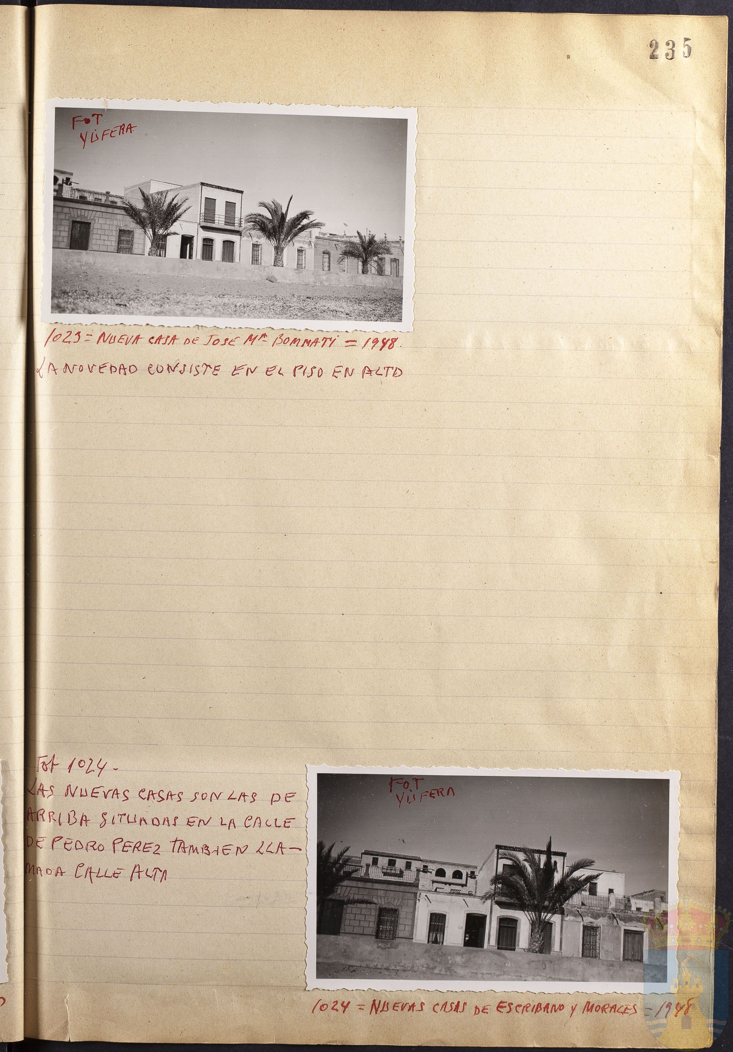 Fotografía 1023: NUEVA CASA DE JOSÉ Mª BONMATI = 1948. Figura escrito a mano el origen de la fotografía: FOT. YÚFERA. Tamaño: 11 x 6,5 cm.