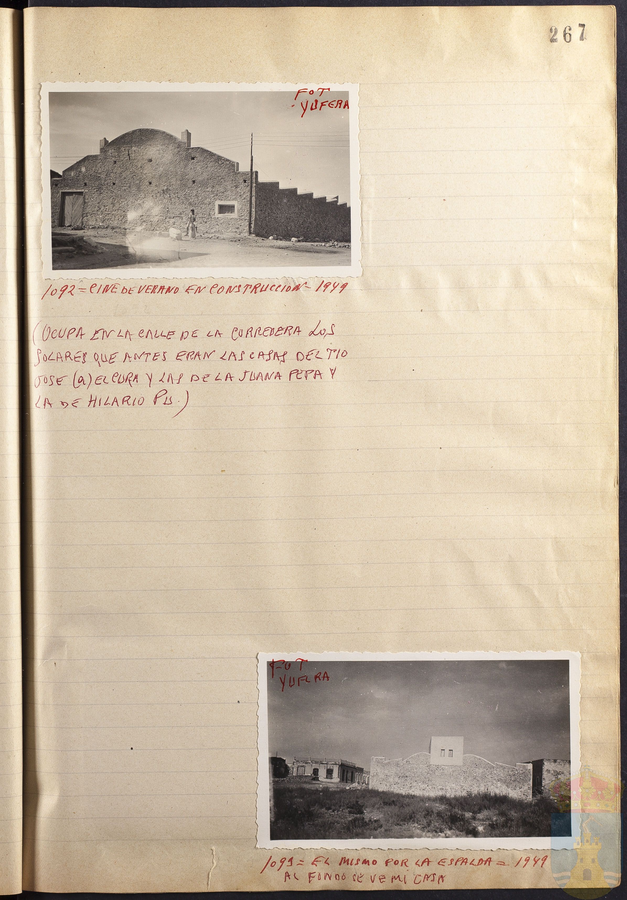 Fotografía 1092: CINE DE VERANO EN CONSTRUCCIÓN =1949. Figura escrito a mano el origen de la fotografía: FOT. YÚFERA. Tamaño: 7 x 11 cm.