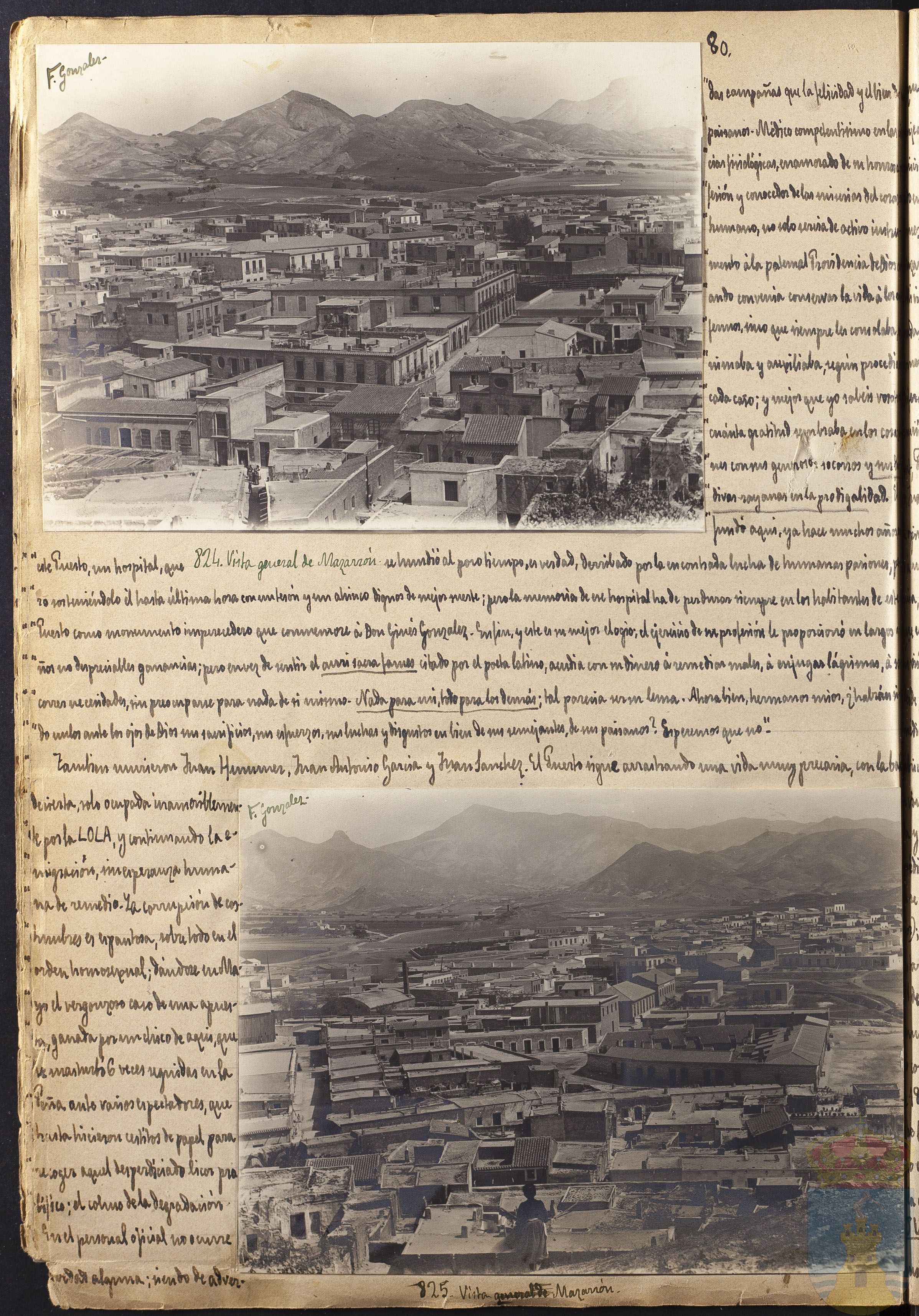 Fotografía 824: Vista general de Mazarrón. Figura escrito a mano el autor de la fotografía: F. González. Tamaño: 11,6 x 16 cm.