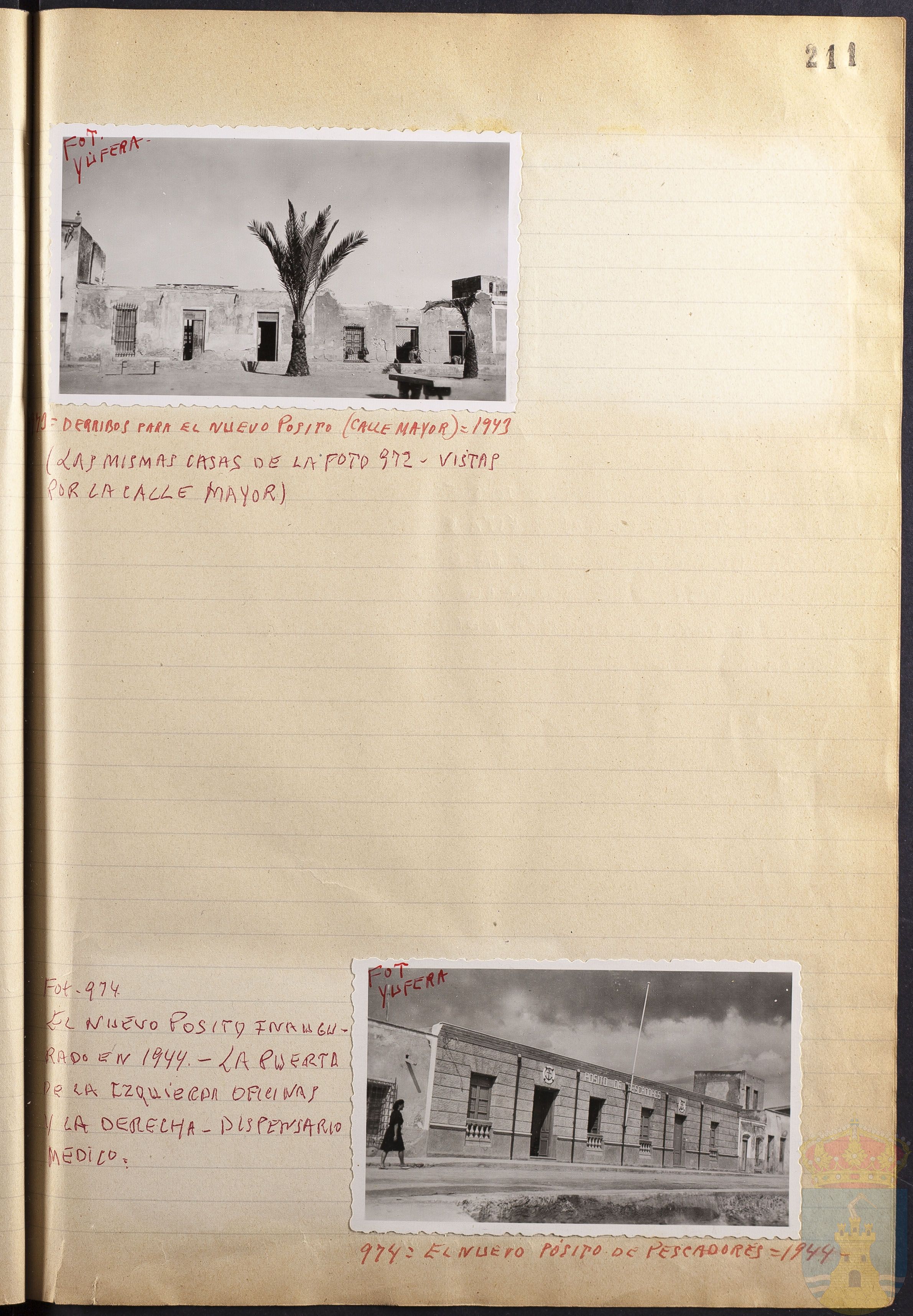Fotografía 974:EL NUEVO PÓSITO DE PESCADORES =1943-. Figura escrito a mano el origen de la fotografía: FOT. YÚFERA. Tamaño: 6,7 x 10,7 cm.