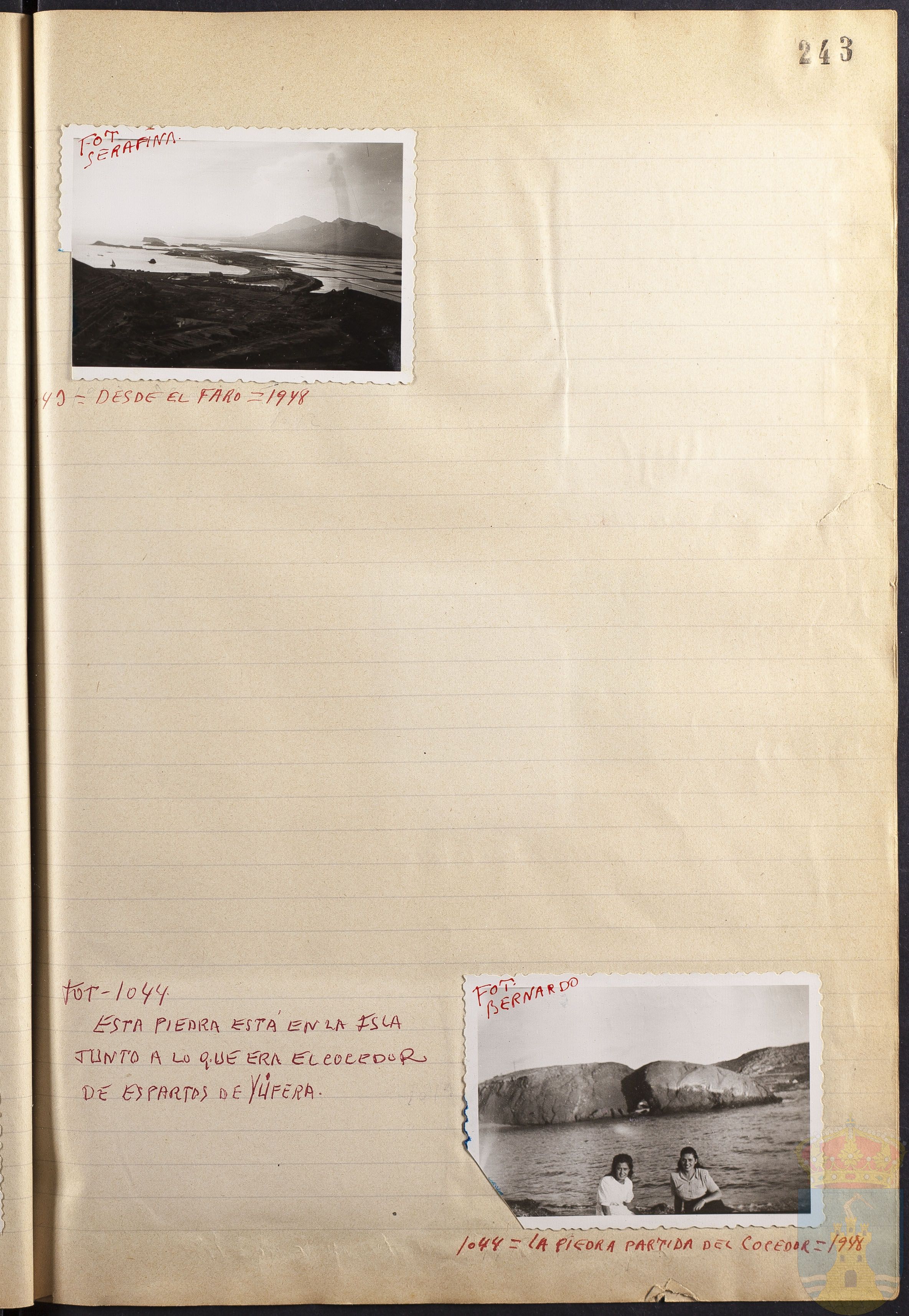 Fotografía 1043: DESDE EL FARO = 1948. Figura escrito a mano el origen de la fotografía: FOT. SERAFINA. Tamaño: 6 x 8,5 cm.
