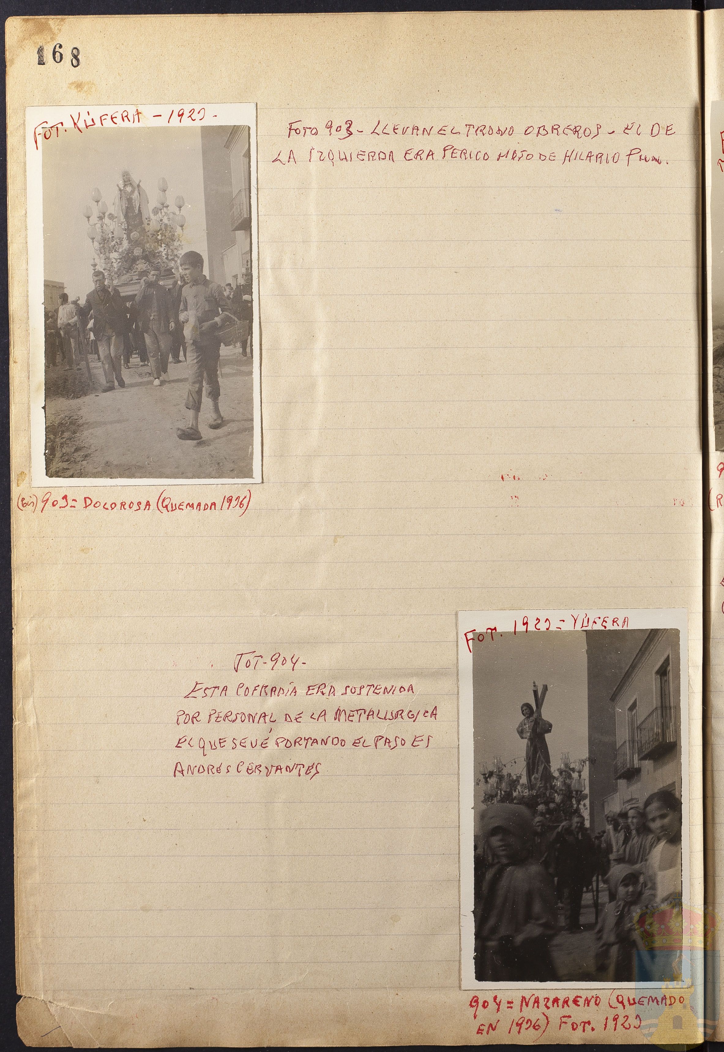 FOT. 904 - ESTA COFRADÍA ERA SOSTENIDA POR PERSONAL DE LA METALÚRGICA EN EL QUE SE VÉ PORTANDO EL PASO ES ANDRÉS CERVANTES.