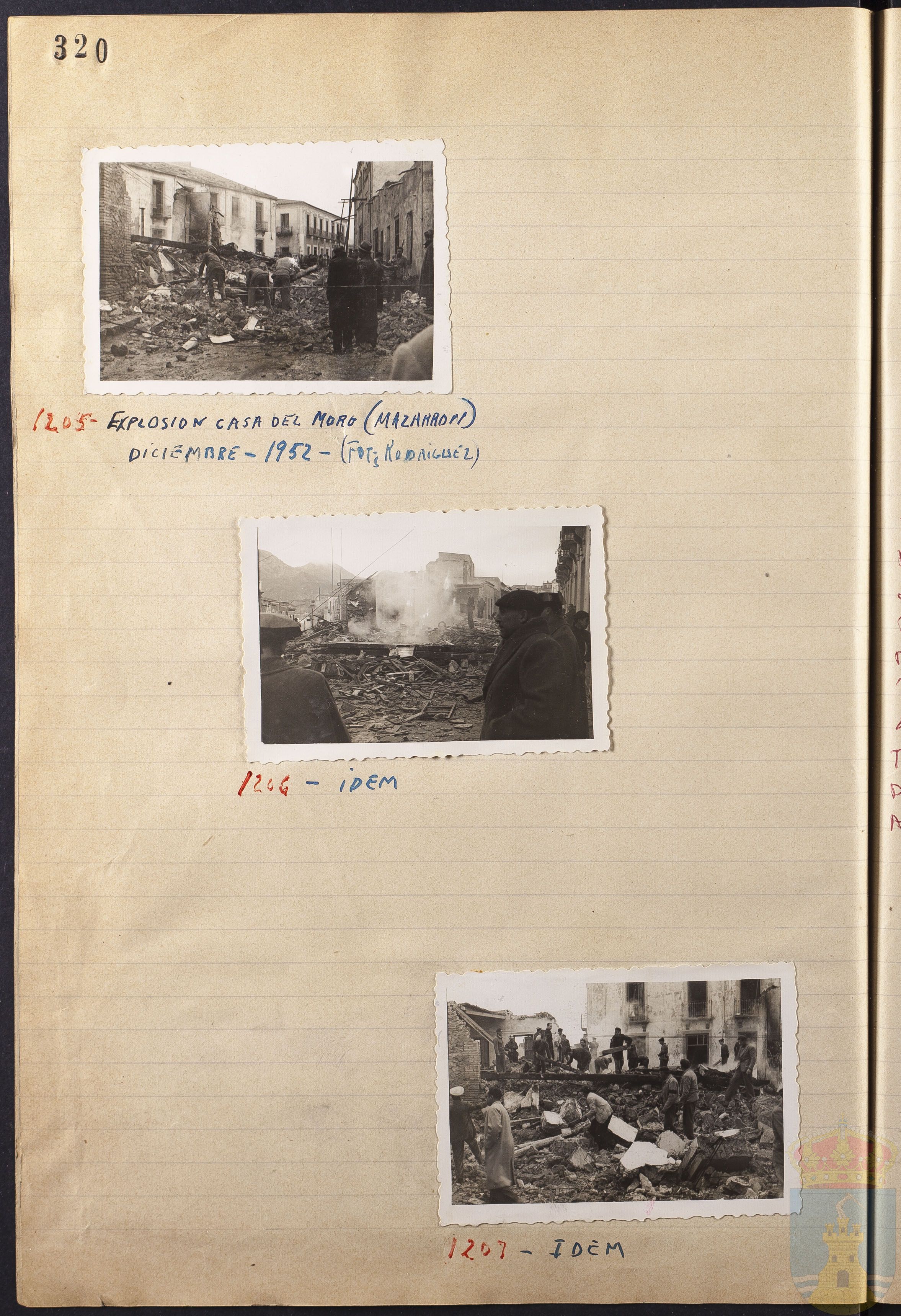 Fotografía 1205: EXPLOSIÓN CASA DEL MORO (MAZARRÓN) DICIEMBRE - 1952. Figura escrito a mano el origen de la fotografía: FOT. RODRÍGUEZ. Tamaño: 6 x 8,8 cm.