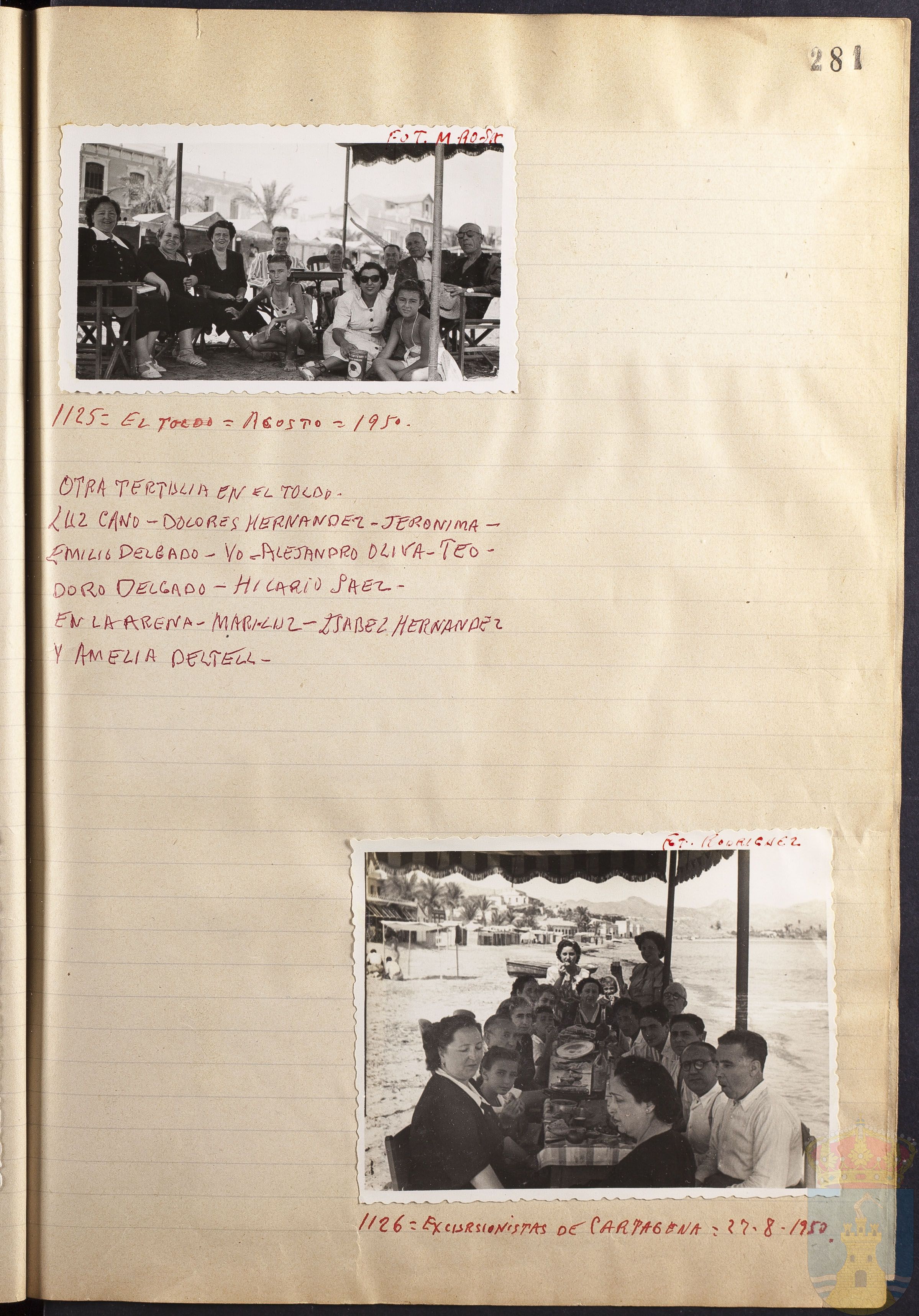 Fotografía 1126: EXCURSIONISTAS DE CARTAGENA = 27-8-1950. Figura escrito a mano el origen de la fotografía: FOT. RODRÍGUEZ. Tamaño: 8,8 x 11,6 cm.