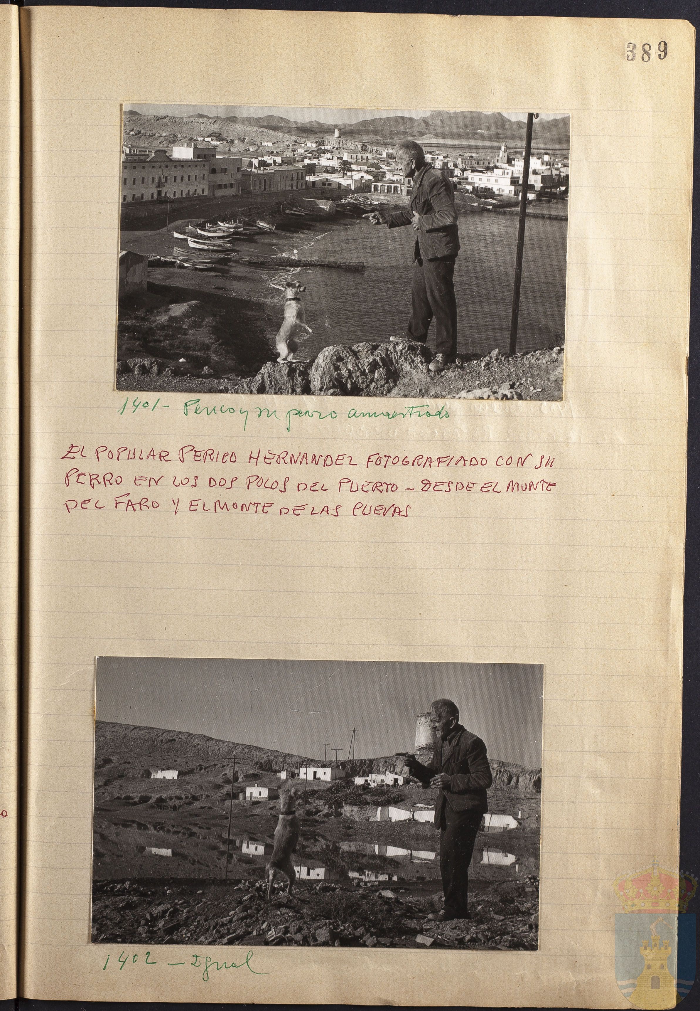Papel con información manuscrita a bolígrafo tamaño 22 x31 cm. Incluye fotografías monocromas en diferentes tamaños que se especifican en el Alcance y contenido.
