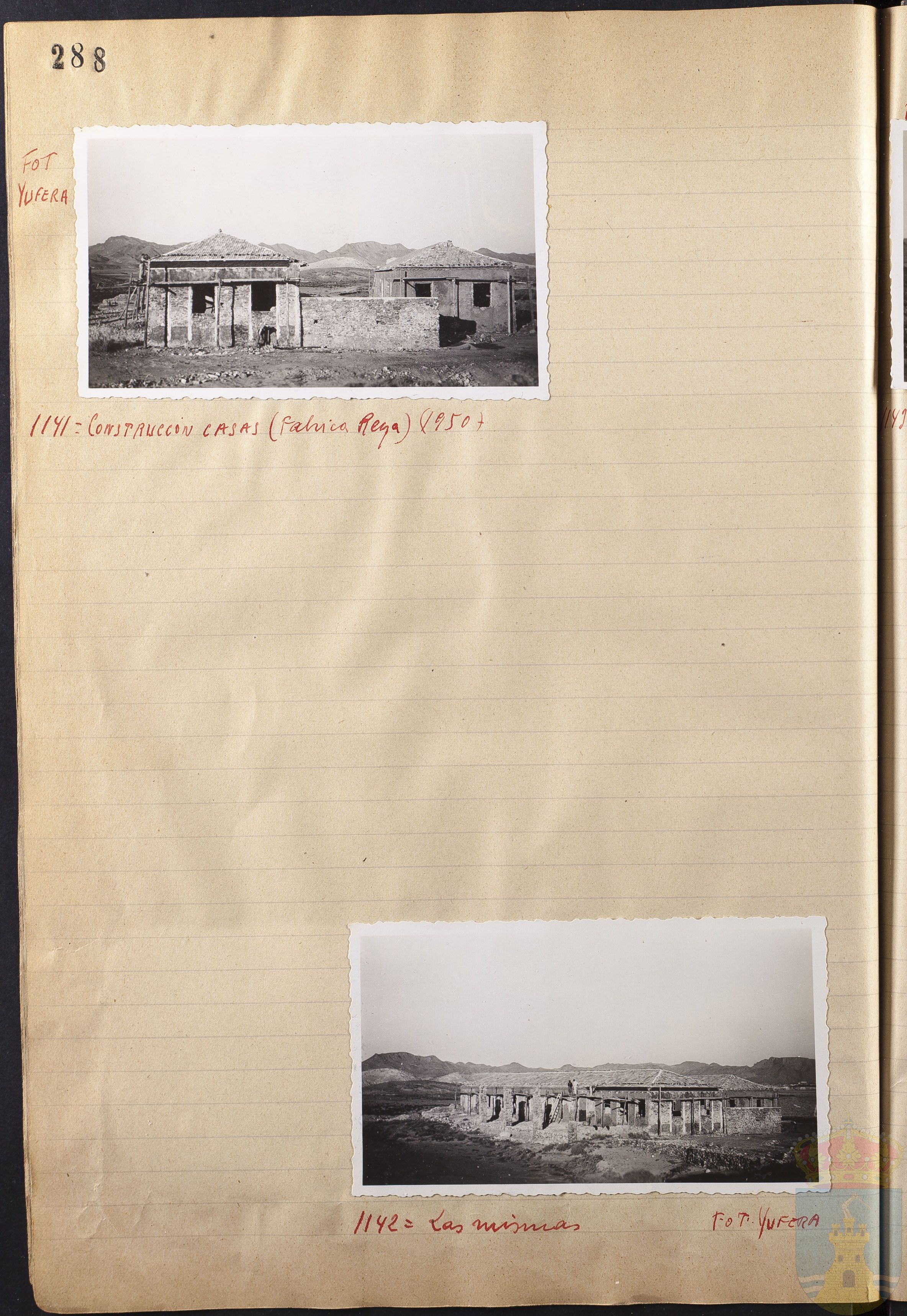 Fotografía 1141: CONSTRUCCIÓN CASAS (Fábrica Reya) (1950). Figura escrito a mano el origen de la fotografía: FOT. YÚFERA. Tamaño: 6,5 x 11,2 cm.