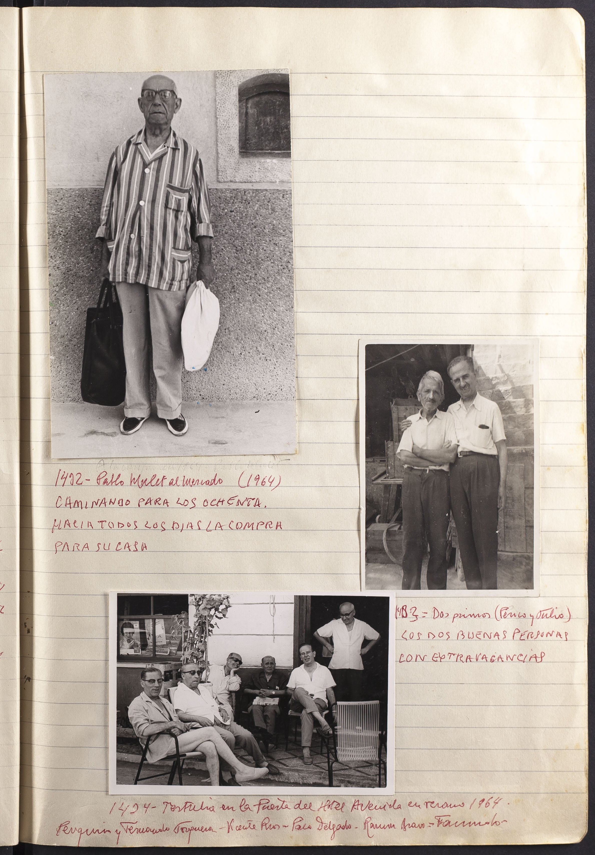 Papel con información manuscrita a bolígrafo tamaño 22 x31 cm. Incluye fotografías monocromas en diferentes tamaños que se especifican en el Alcance y contenido.