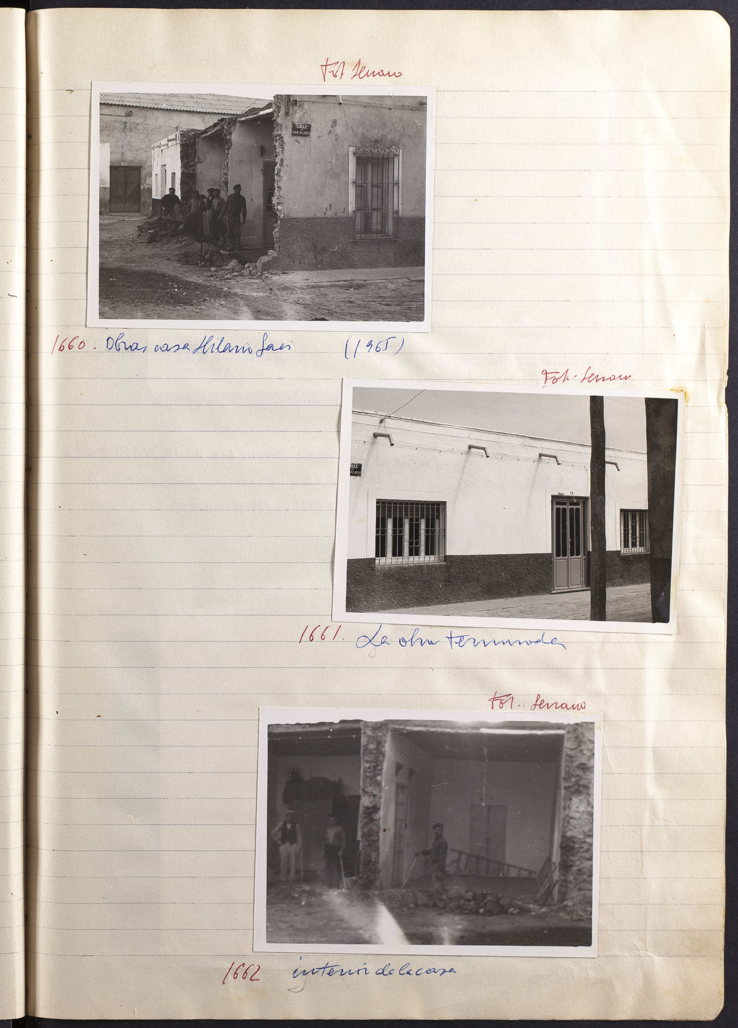 Fotografía 1660: Obras casa Hilario Sáez (1965). Figura escrito a mano el origen de la fotografía: FOT. Serrano. Tamaño: 7,5 x 10,5 cm