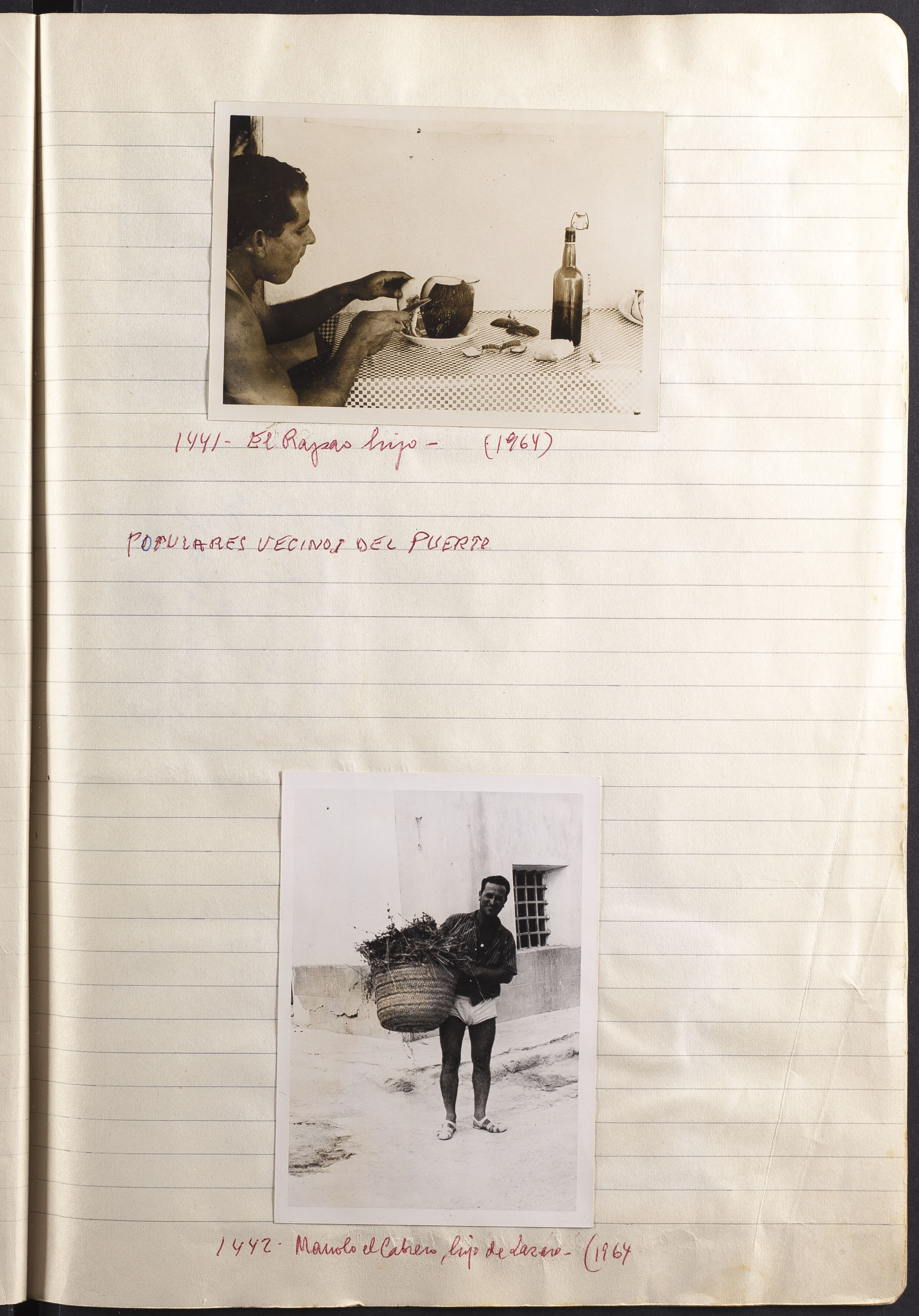 Papel con información manuscrita a bolígrafo tamaño 22 x31 cm. Incluye fotografías monocromas en diferentes tamaños que se especifican en el Alcance y contenido.