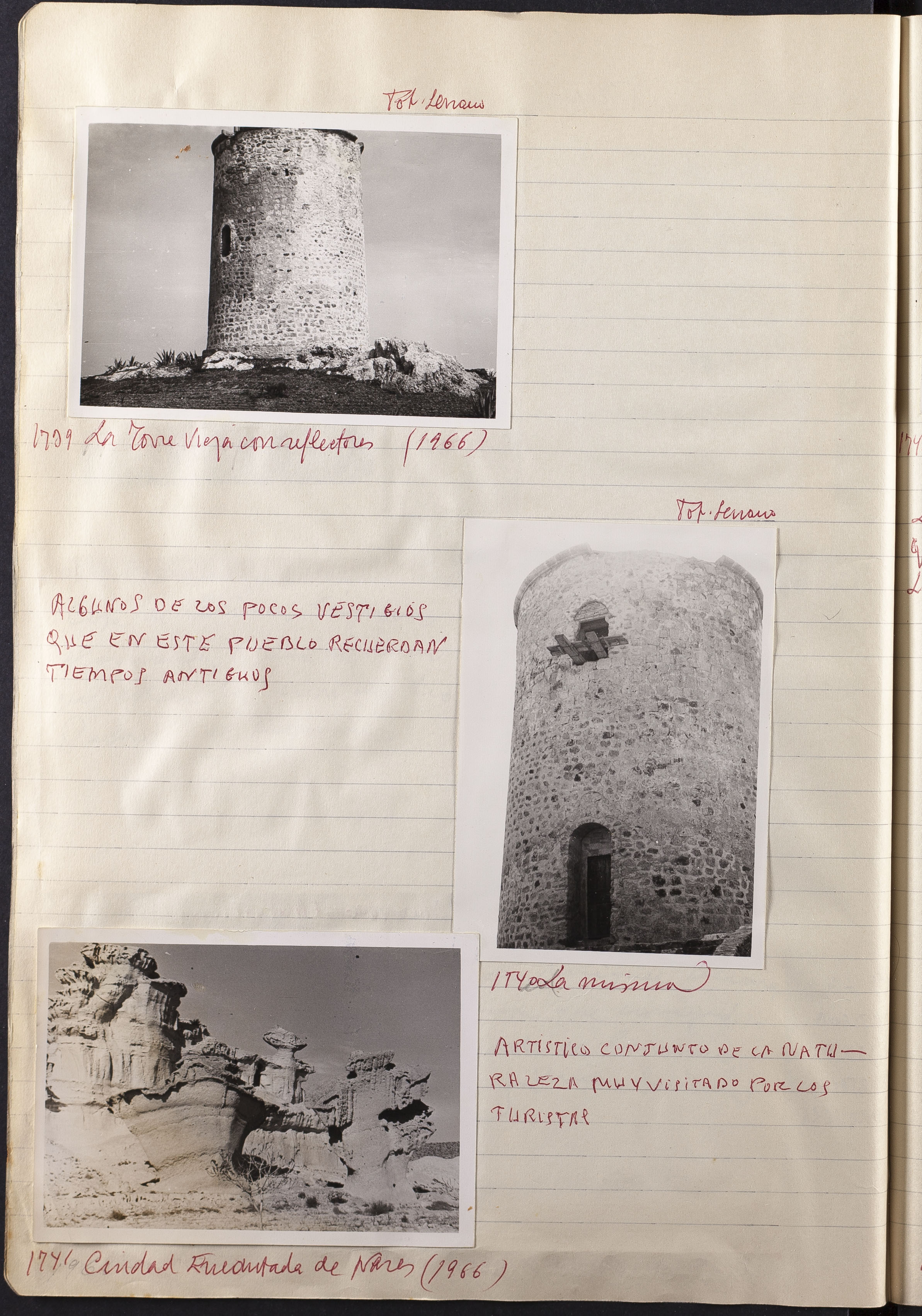 Papel con información manuscrita a bolígrafo tamaño 22 x31 cm. Incluye fotografías monocromas en diferentes tamaños que se especifican en el Alcance y contenido.