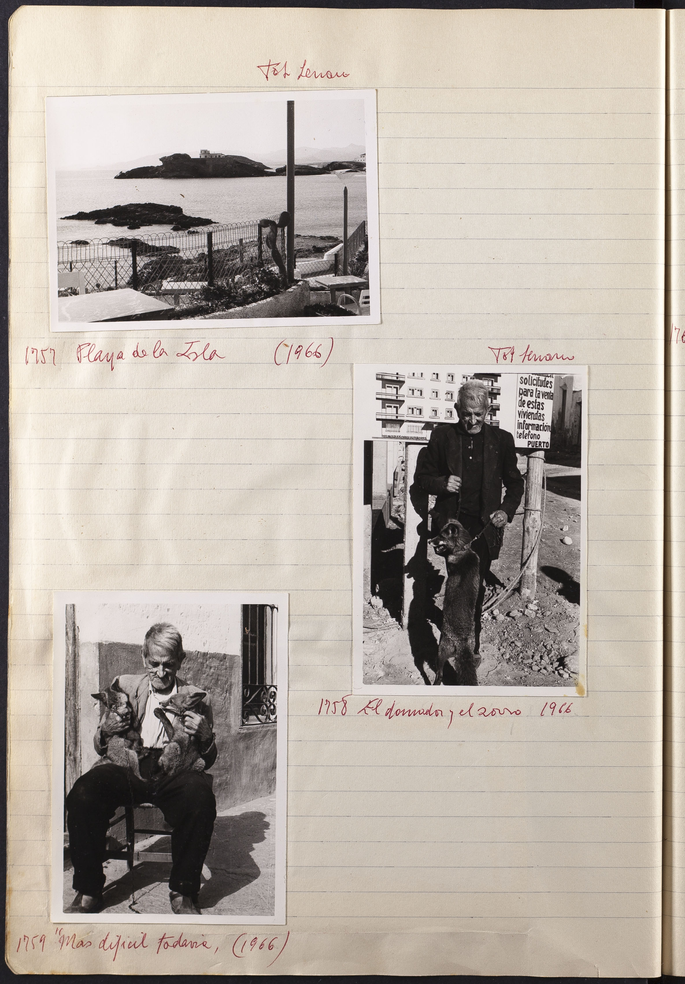 Papel con información manuscrita a bolígrafo tamaño 22 x31 cm. Incluye fotografías monocromas en diferentes tamaños que se especifican en el Alcance y contenido.