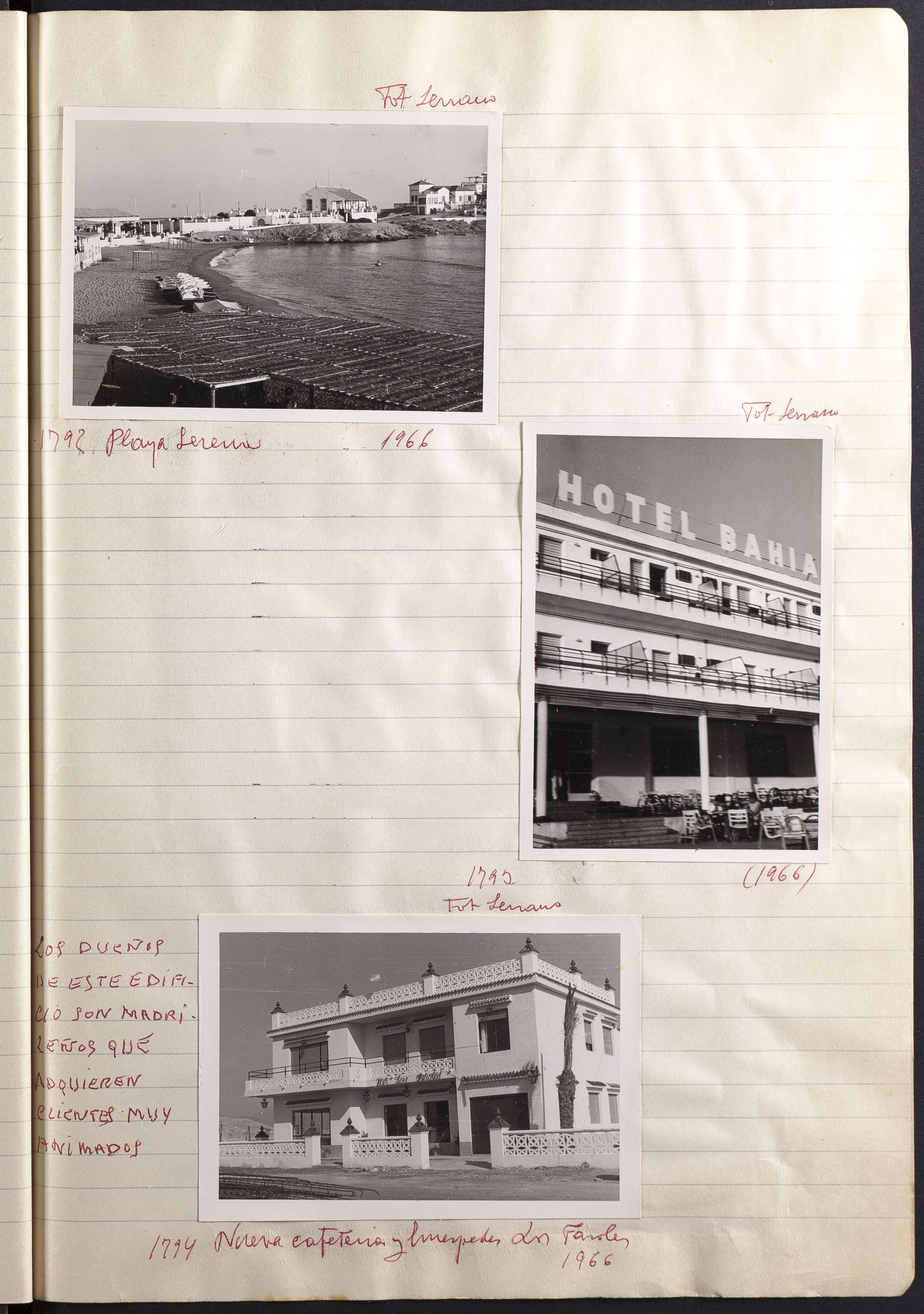 Papel con información manuscrita a bolígrafo tamaño 22 x31 cm. Incluye fotografías monocromas en diferentes tamaños que se especifican en el Alcance y contenido.