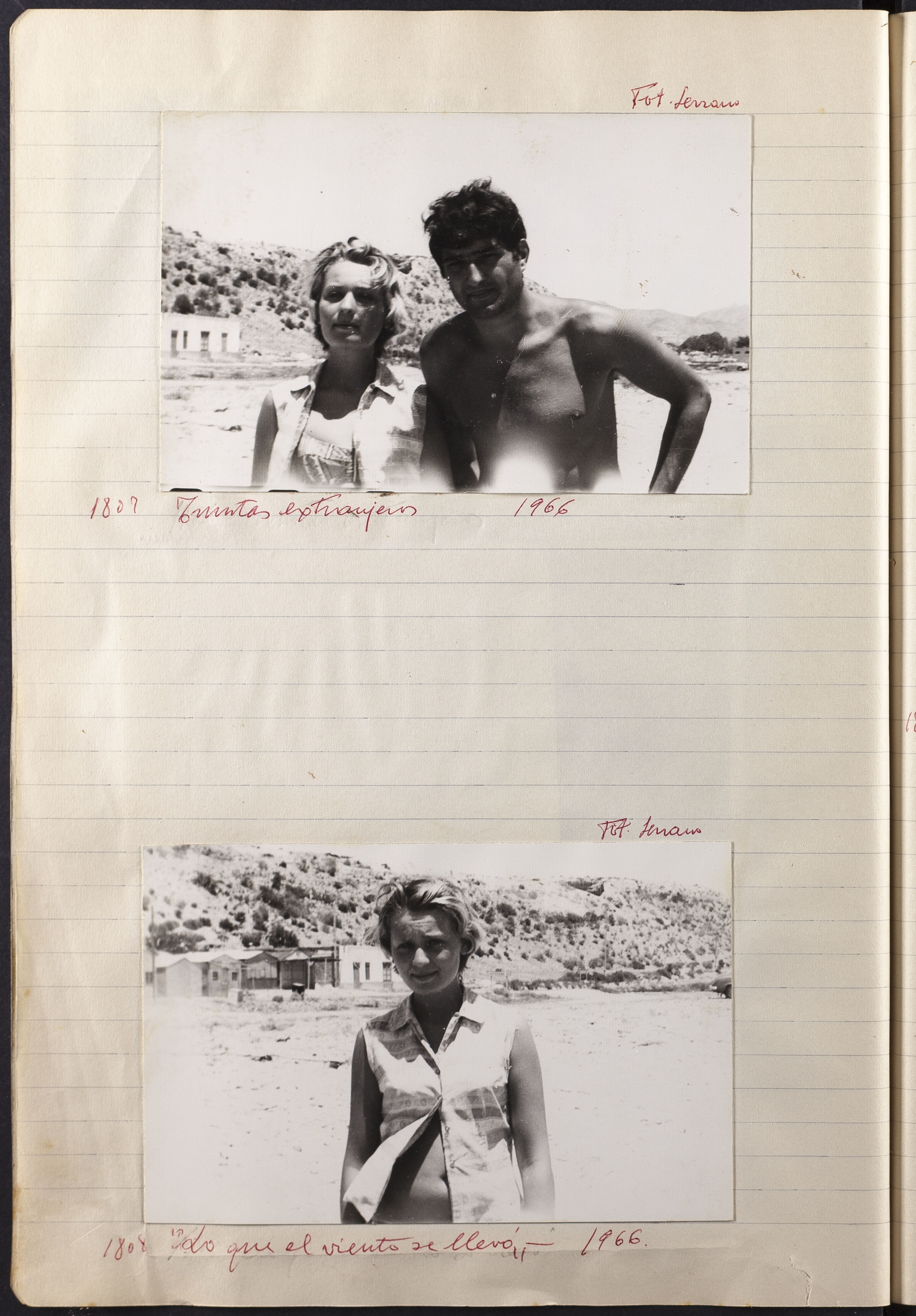 Papel con información manuscrita a bolígrafo tamaño 22 x31 cm. Incluye fotografías monocromas en diferentes tamaños que se especifican en el Alcance y contenido.