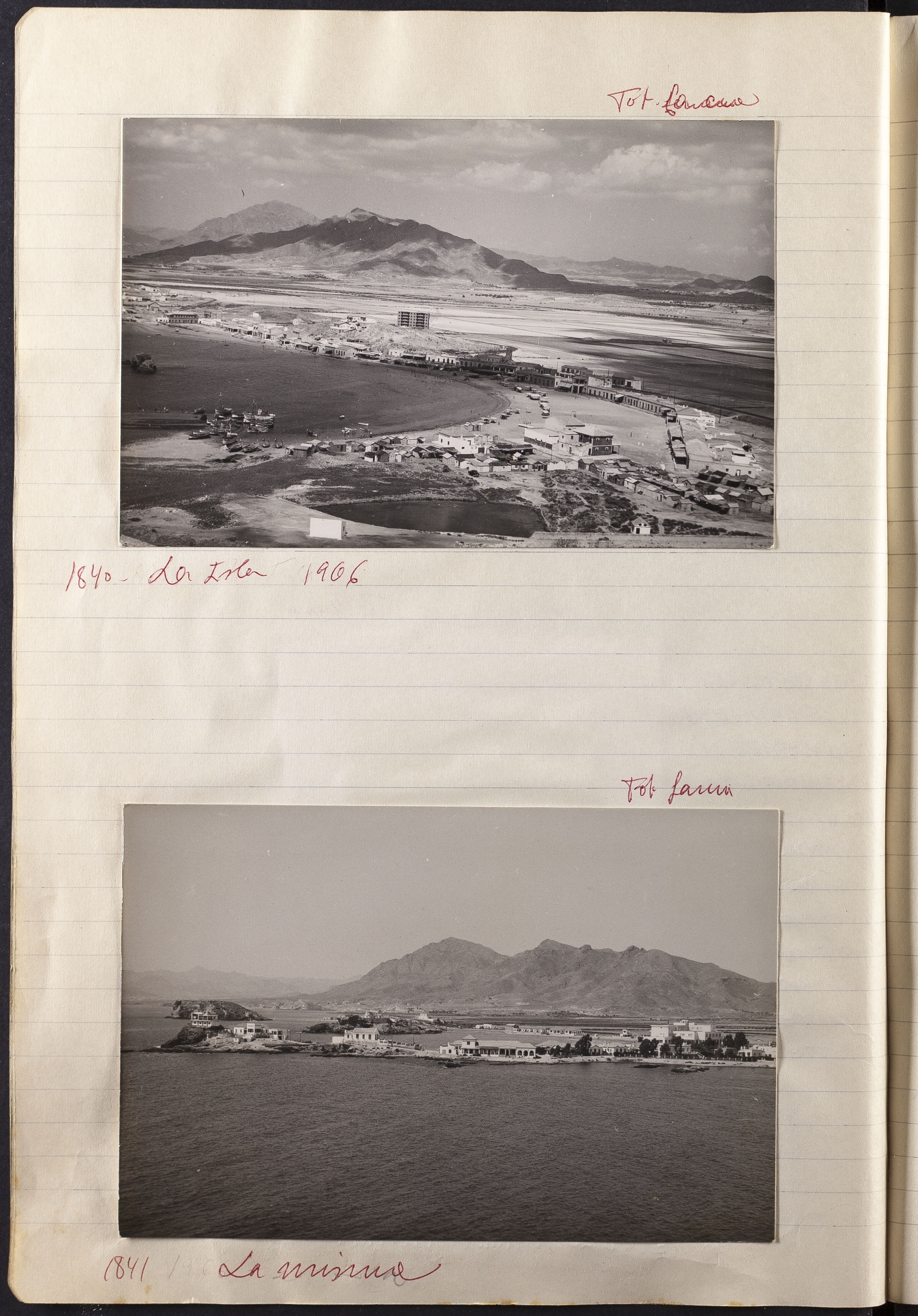 Papel con información manuscrita a bolígrafo tamaño 22 x31 cm. Incluye fotografías monocromas en diferentes tamaños que se especifican en el Alcance y contenido.