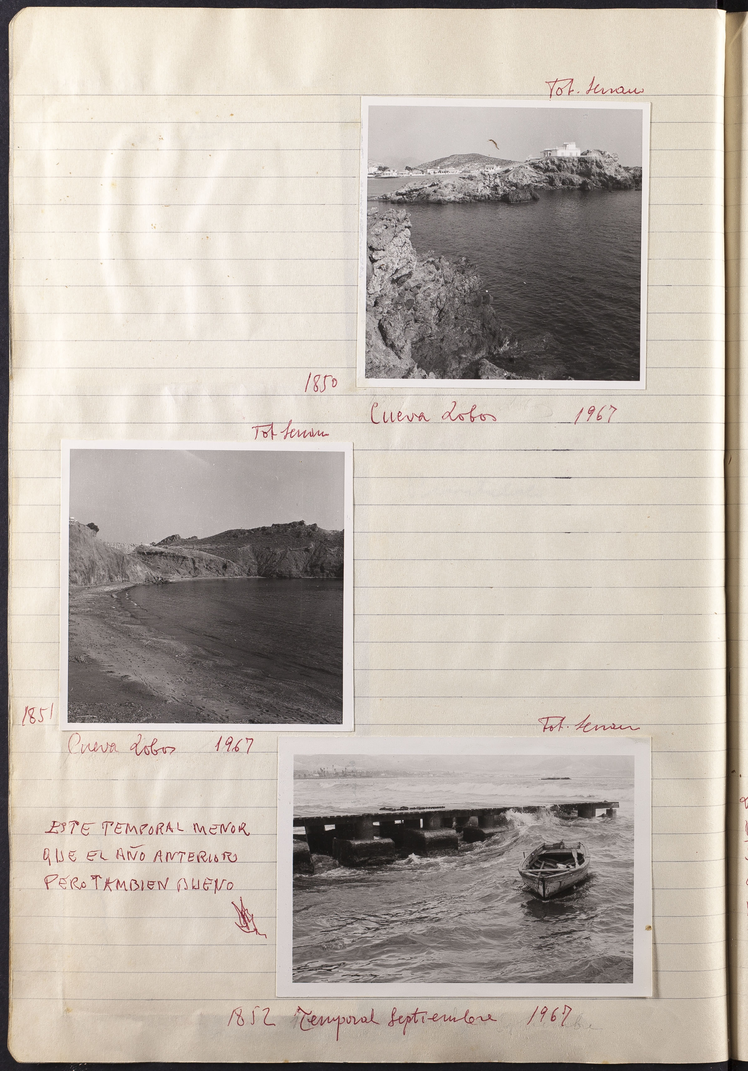 Papel con información manuscrita a bolígrafo tamaño 22 x31 cm. Incluye fotografías monocromas en diferentes tamaños que se especifican en el Alcance y contenido.