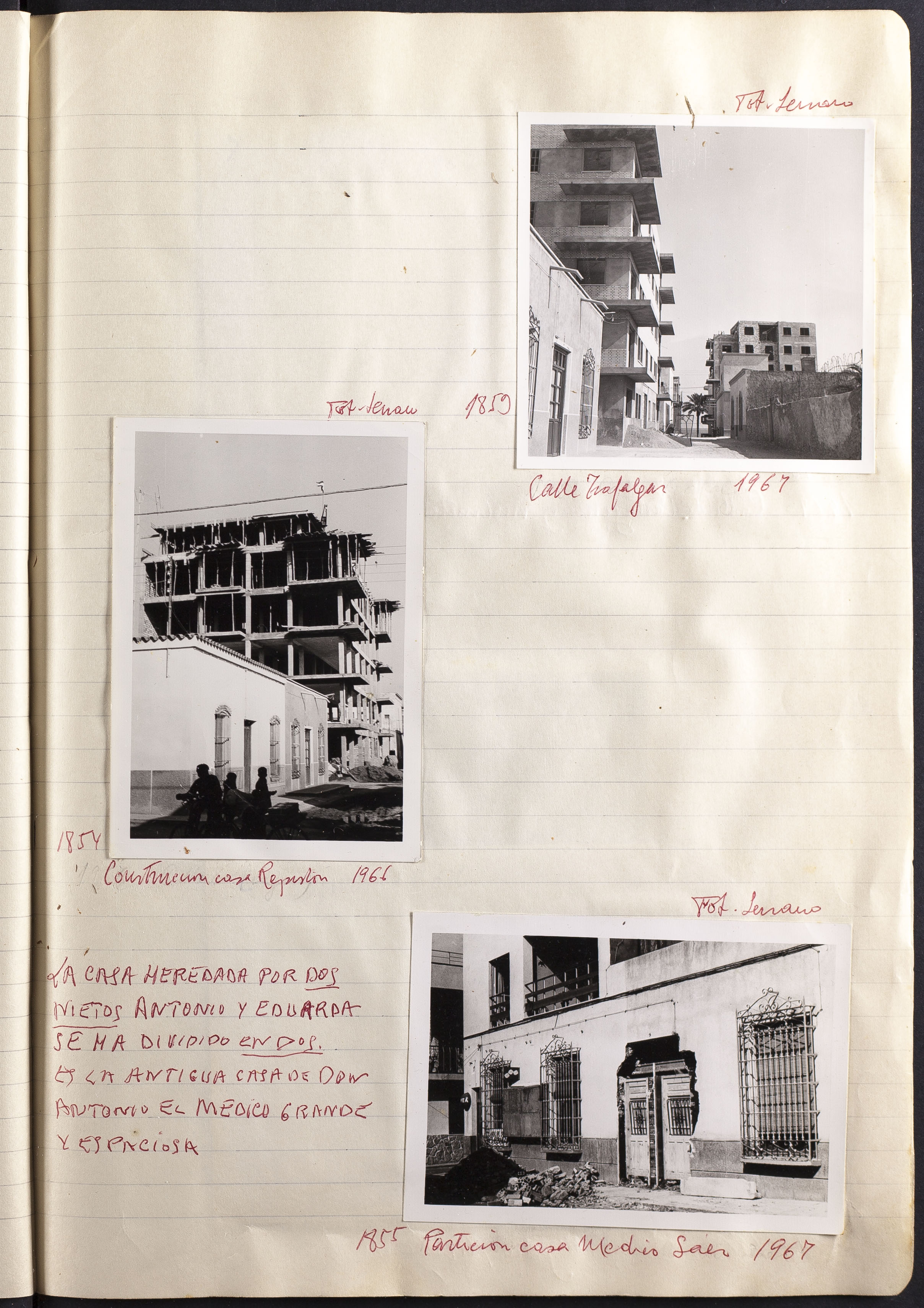 Fotografía 1854:Construcción casa Repistón 1966. Figura escrito a mano el origen de la fotografía: FOT. Serrano. Tamaño: 10,5 x 7,5 cm.