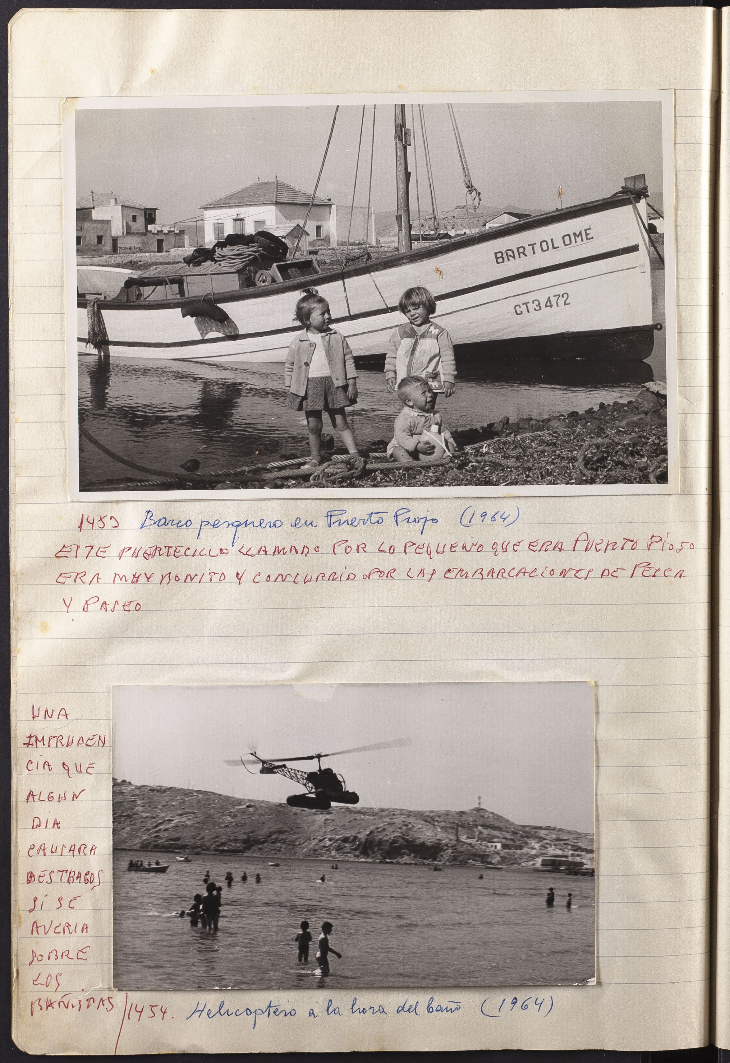 Papel con información manuscrita a bolígrafo tamaño 22 x31 cm. Incluye fotografías monocromas en diferentes tamaños que se especifican en el Alcance y contenido.