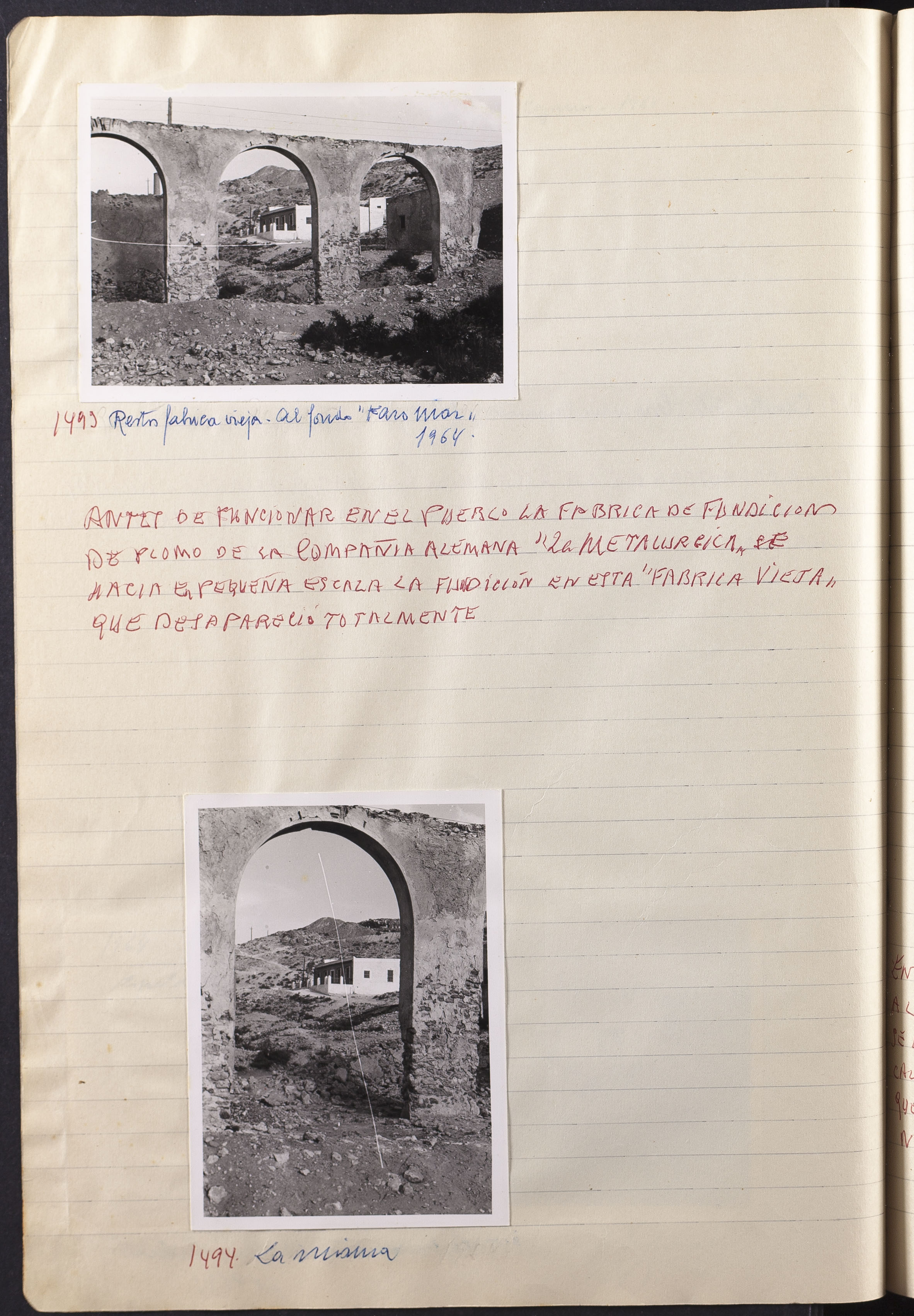 Fotografía 1493: Restos fábrica vieja - Al fondo "Faro Mar", 1964. Tamaño: 7,5 x 10,5 cm.