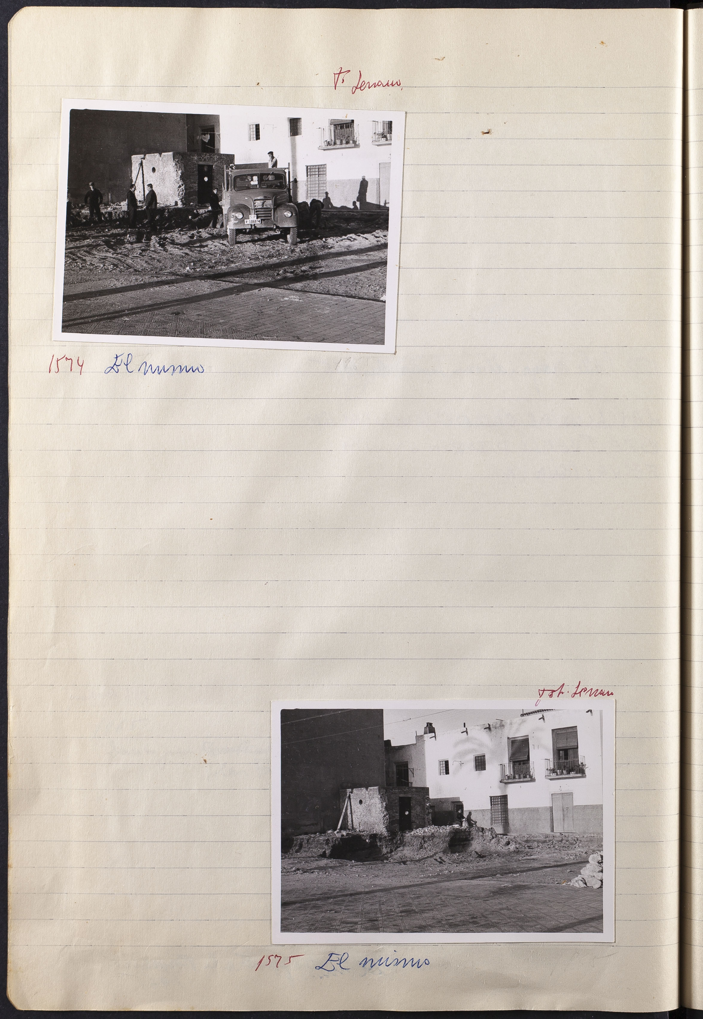Papel con información manuscrita a bolígrafo tamaño 22 x31 cm. Incluye fotografías monocromas en diferentes tamaños que se especifican en el Alcance y contenido.