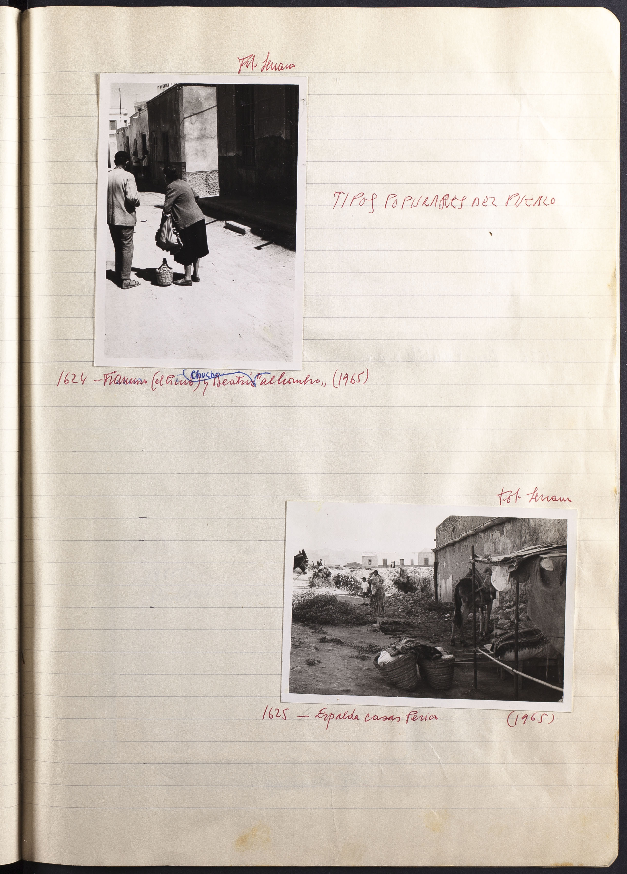 Papel con información manuscrita a bolígrafo tamaño 22 x31 cm. Incluye fotografías monocromas en diferentes tamaños que se especifican en el Alcance y contenido.