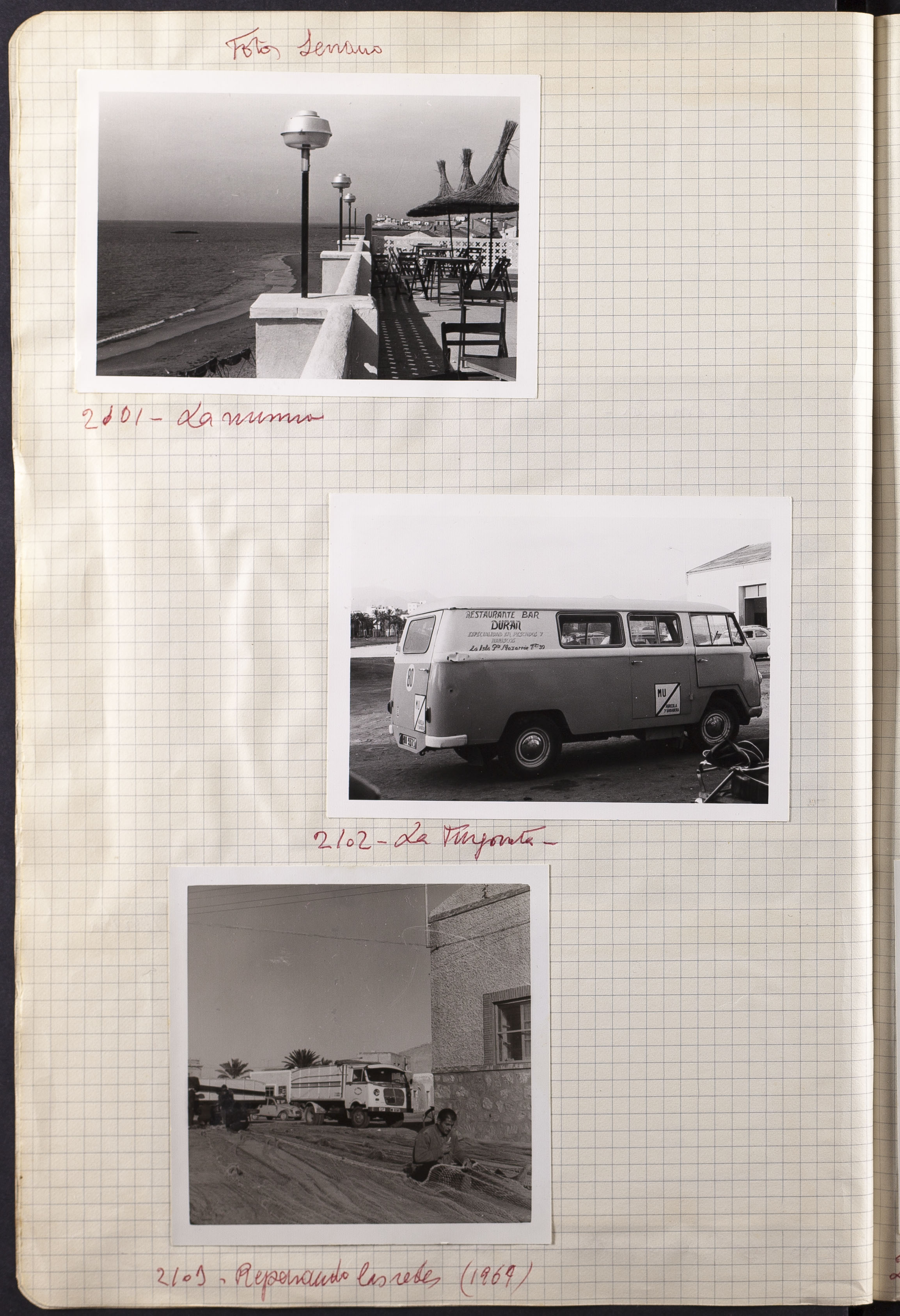 Papel con información manuscrita a bolígrafo tamaño 22 x31 cm. Incluye fotografías monocromas en diferentes tamaños que se especifican en el Alcance y contenido.