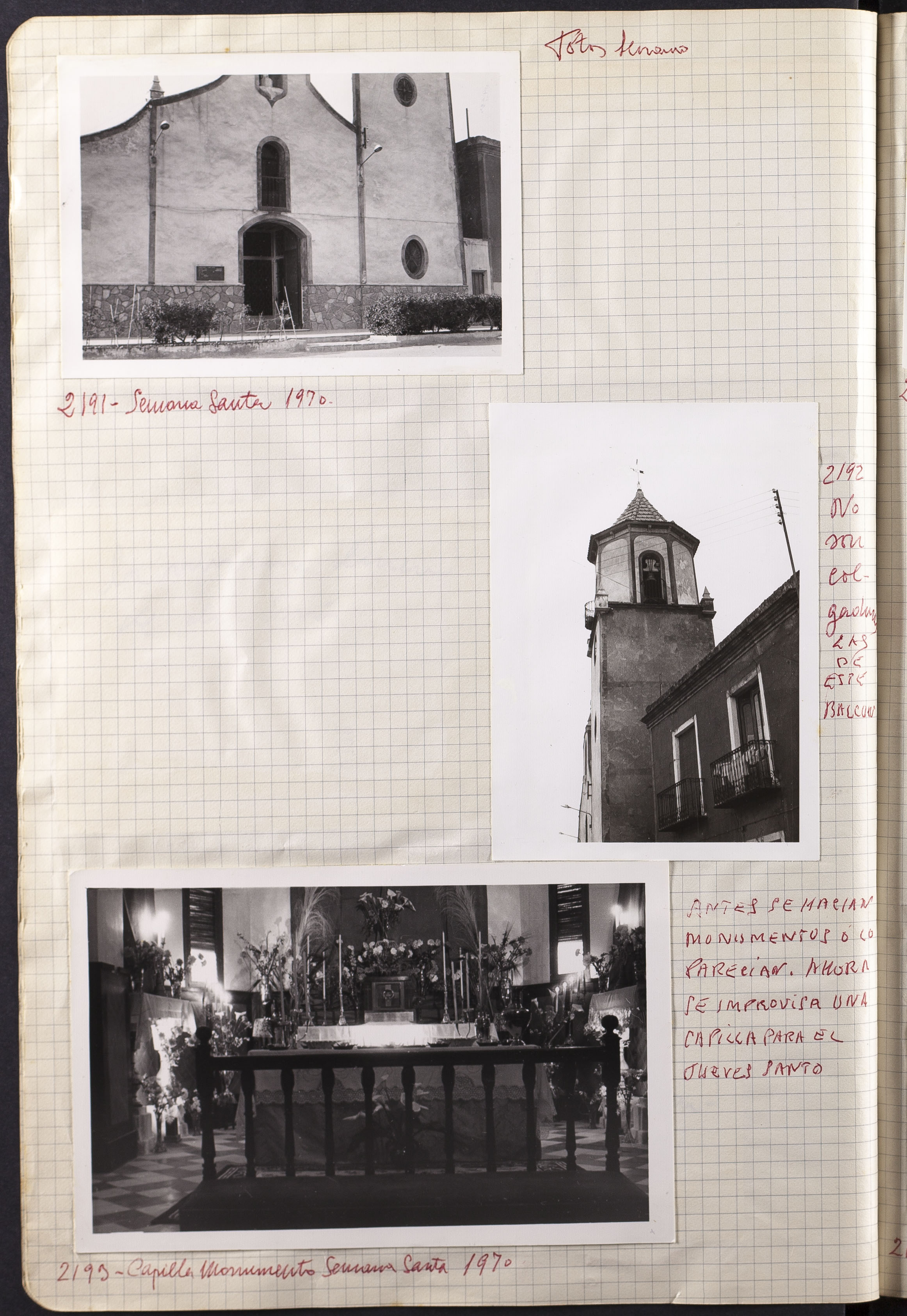 Fotografía 2193: Capilla Monumento Semana Santa 1970. Dimensiones: 7,6 x 10,9 cm