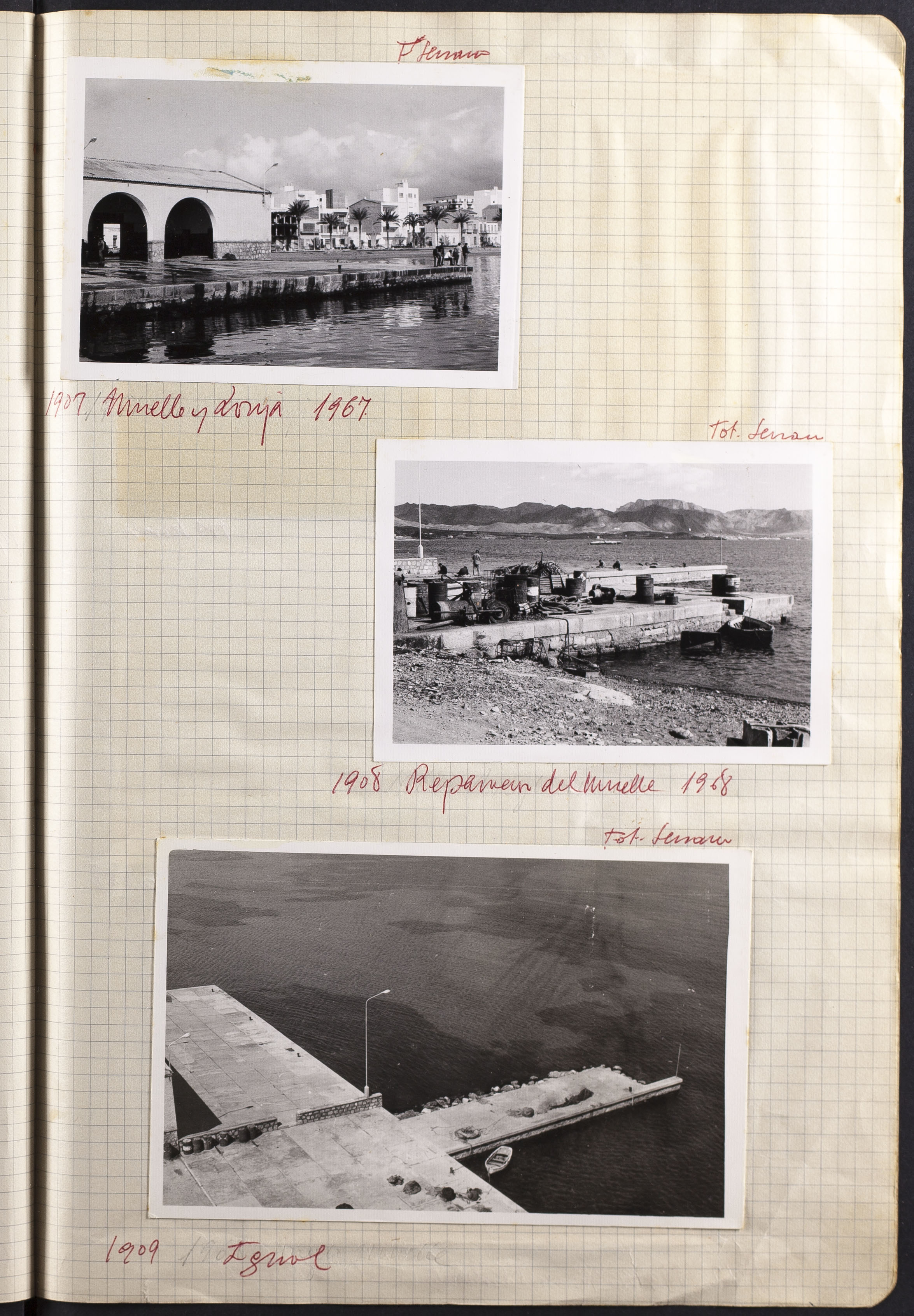 Fotografía 1908: Reparación del Muelle 1968. Figura escrito a mano el origen de la fotografía: FOT. Serrano. Tamaño: 8,8 x 13,5 cm.
