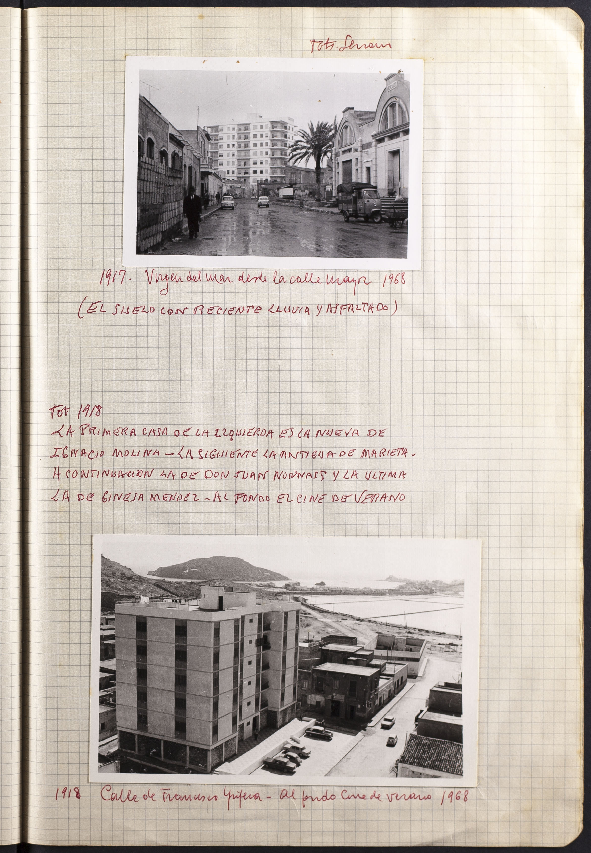 Papel con información manuscrita a bolígrafo tamaño 22 x31 cm. Incluye fotografías monocromas en diferentes tamaños que se especifican en el Alcance y contenido.