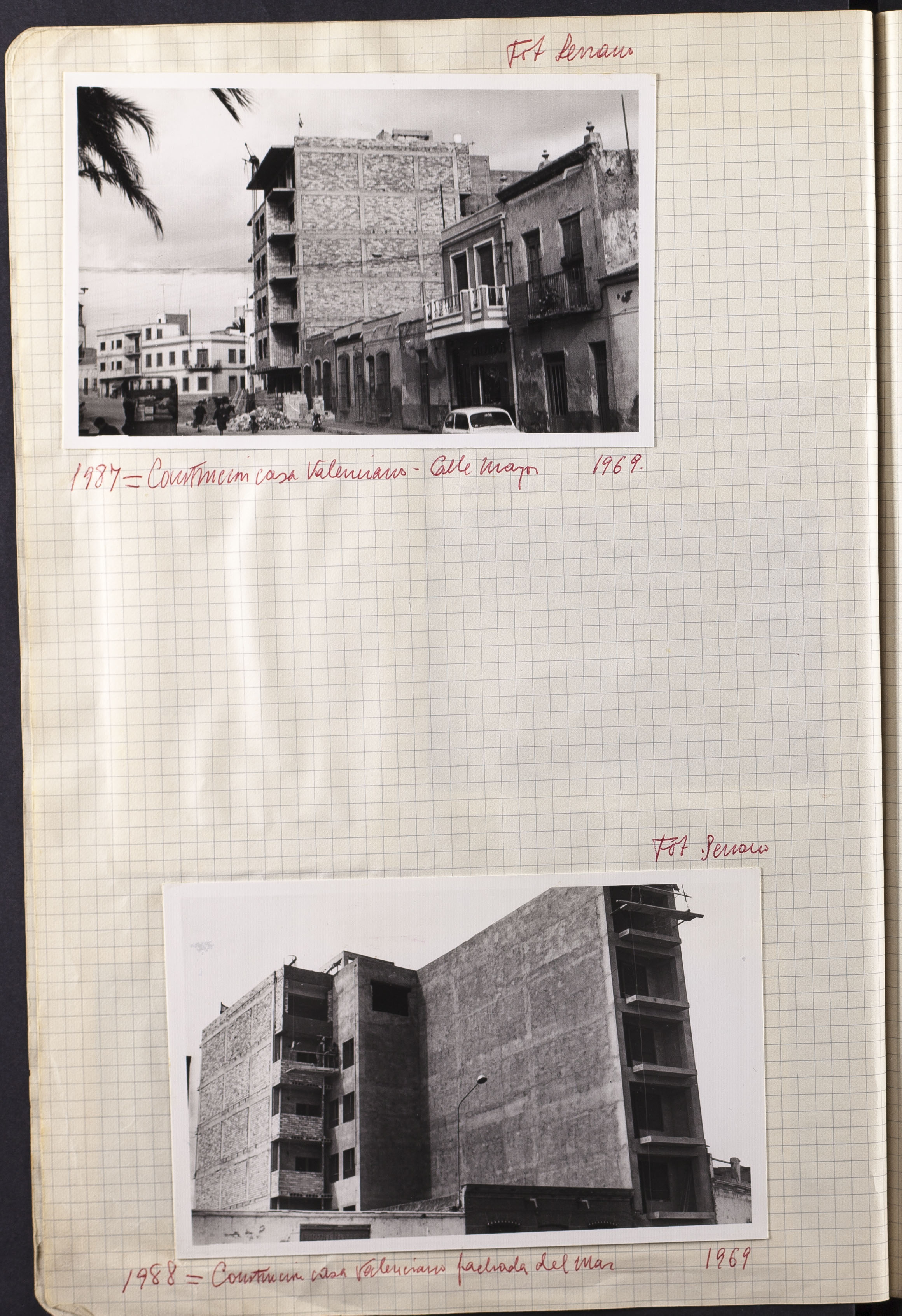 Fotografía 1988: Construcción casa Valenciano fachada del Mar 1969. Tamaño: 9 x 14 cm.