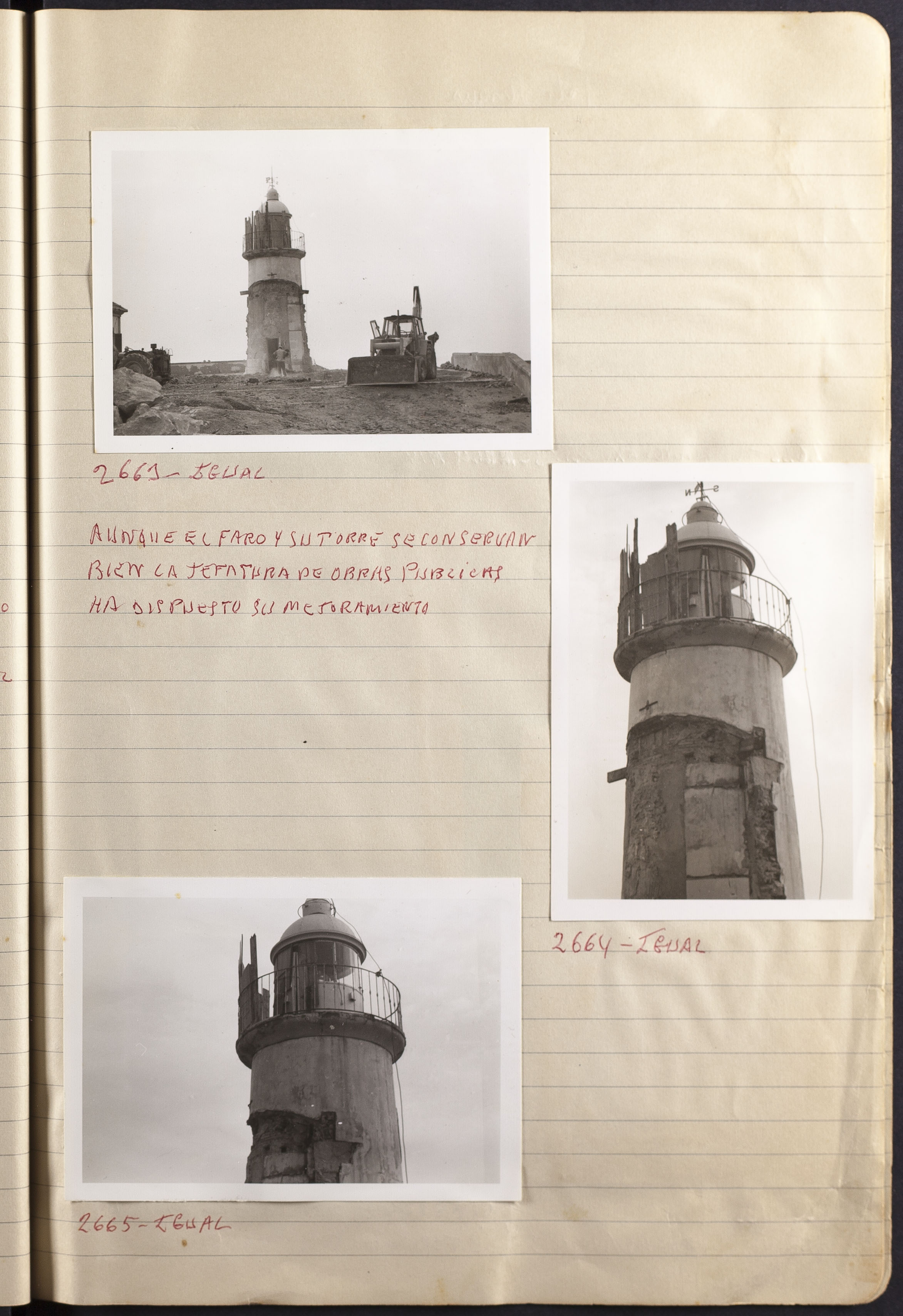 Comentario de las fotografías: AUNQUE EL FARO Y SU TORRE SE CONSERVAN BIEN LA JEFATURA DE OBRAS PÚBLICAS HA DISPUESTO SU MEJORAMIENTO.