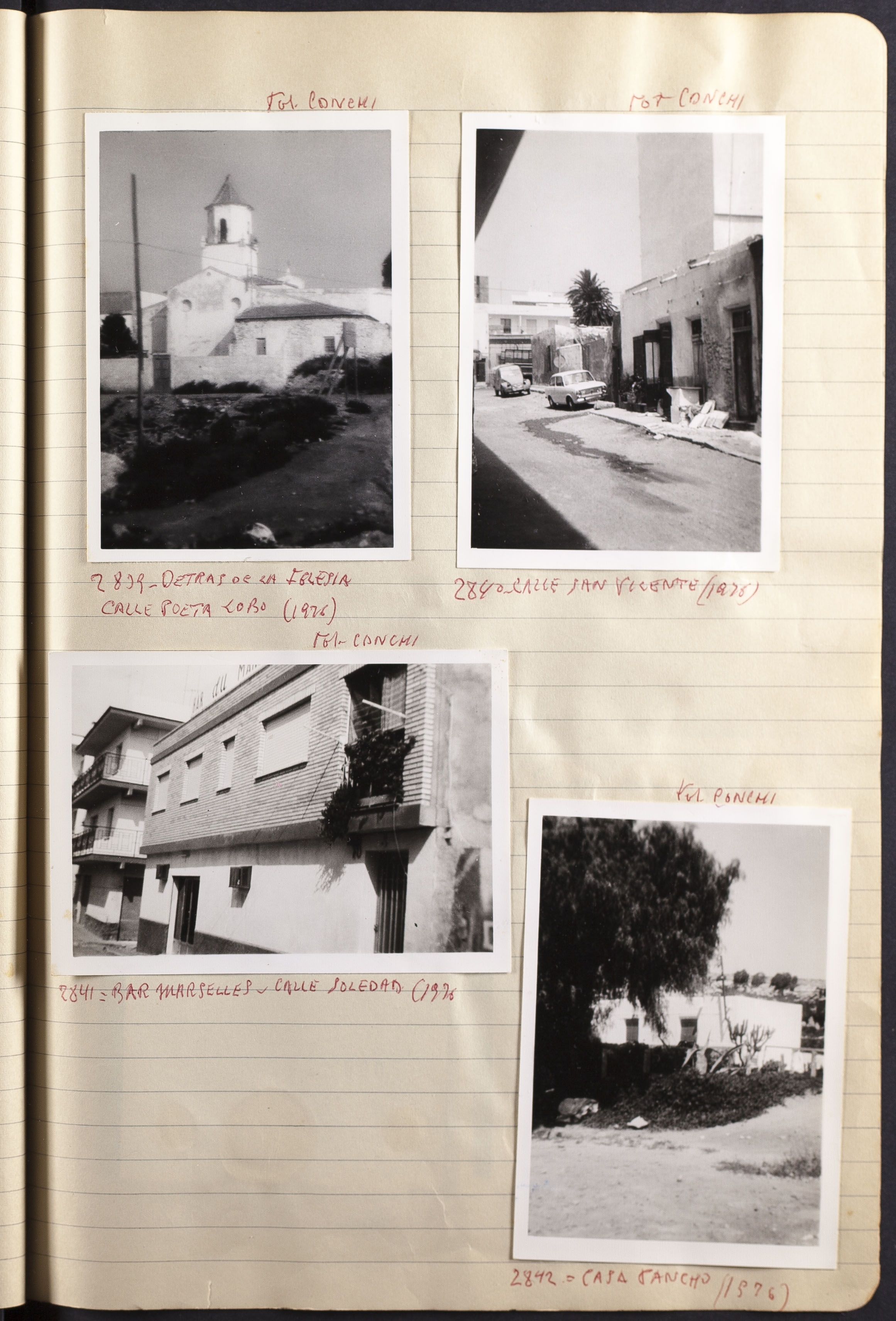 Fotografía 2839: DETRÁS DE LA IGLESIA CALLE POETA LOBO (1976). Figura escrito a mano el origen de la fotografía: Fot. Conchi. Dimensiones: 10,5 x 7,5 cm
