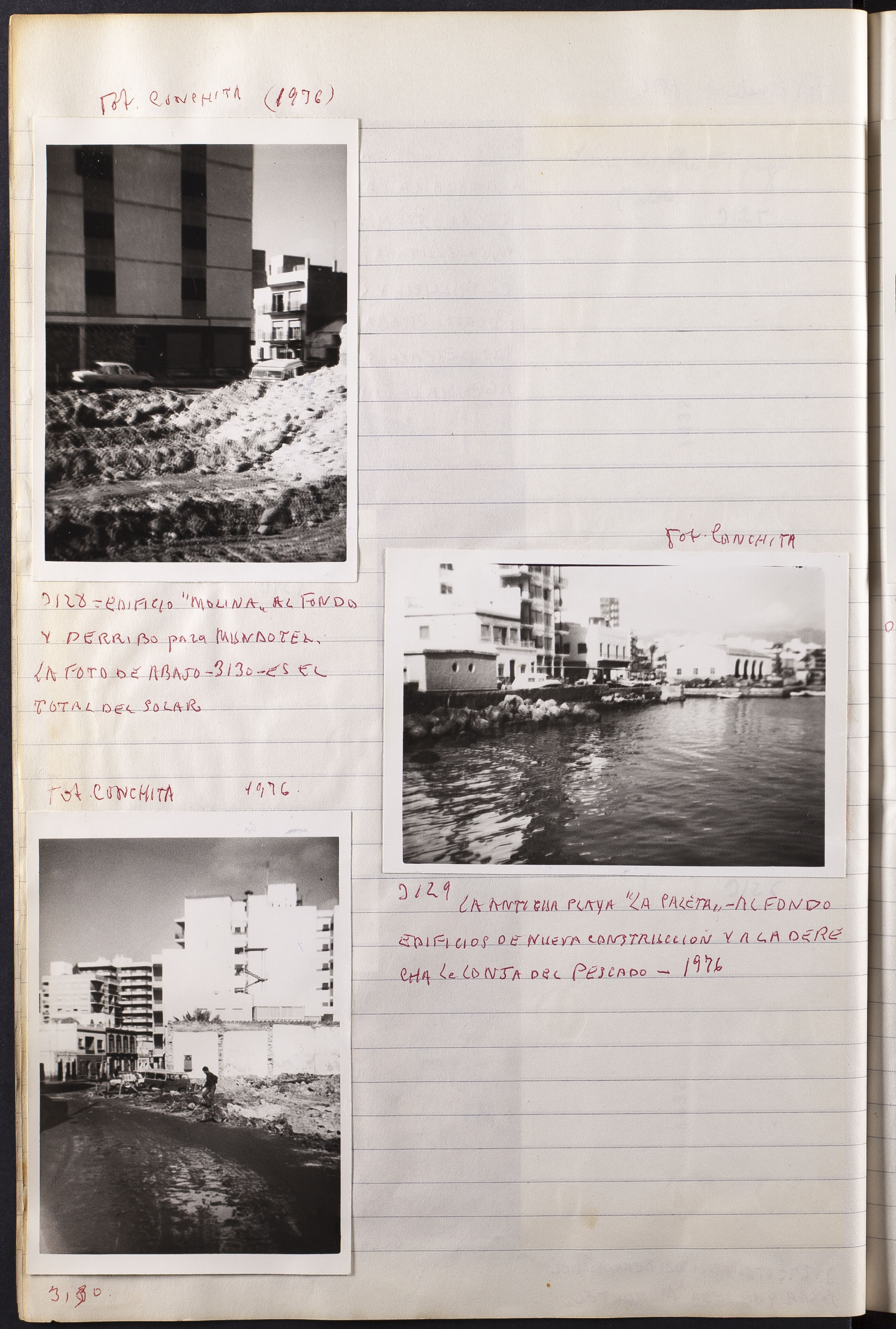 Fotografía 3129: LA ANTIGUA PLAYA "LA CALETA" - AL FONDO EDIFICIOS DE NUEVA CONSTRUCCIÓN Y A LA DERECHA LA LONJA DEL PESCADO. 1976. Figura escrito a mano el origen de la fotografía: Fot. CONCHI. Dimensiones: 7,5 x 11 cm