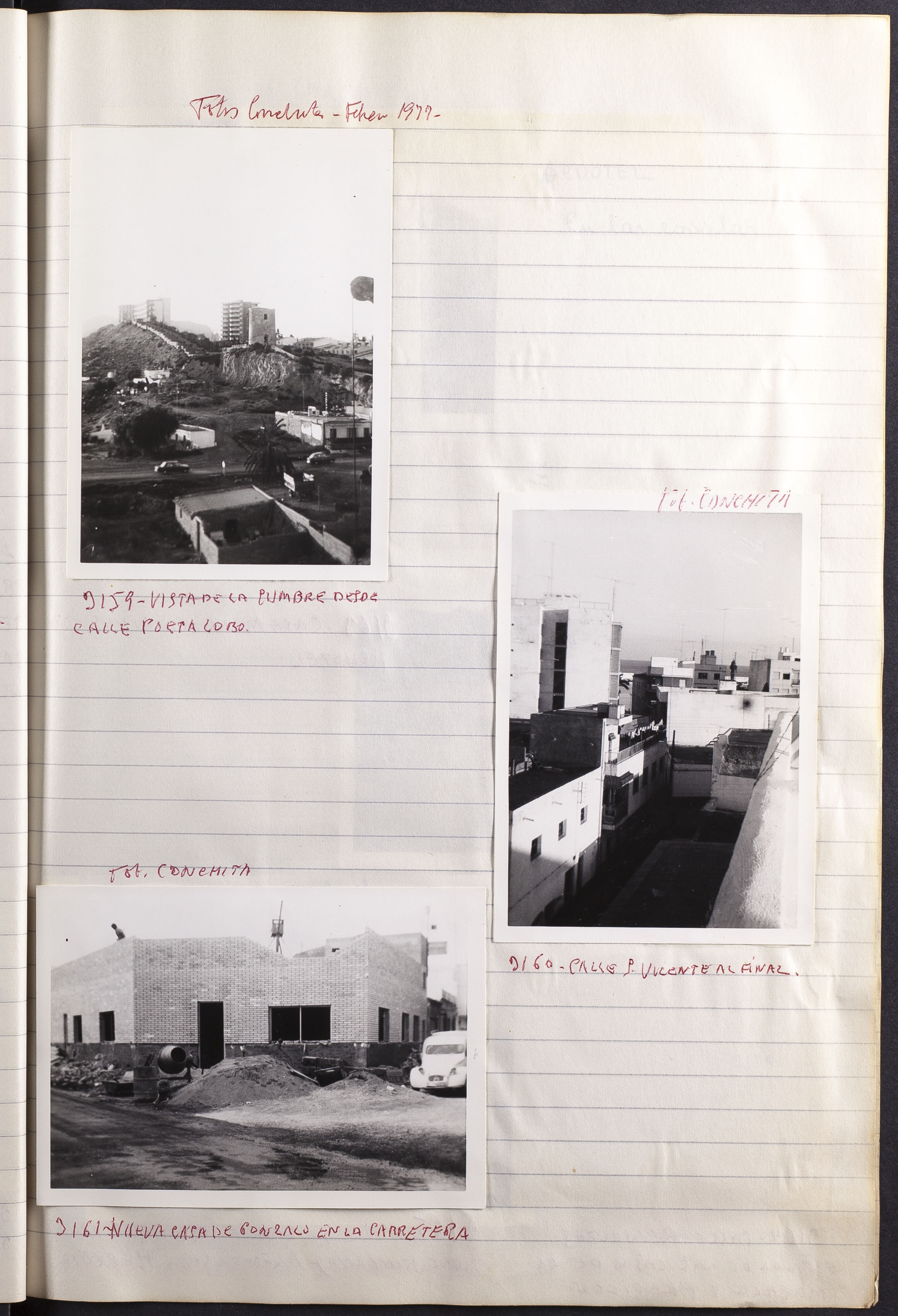 Papel con información manuscrita a bolígrafo tamaño 22 x31 cm. Incluye fotografías monocromas en diferentes tamaños que se especifican en el Alcance y contenido.