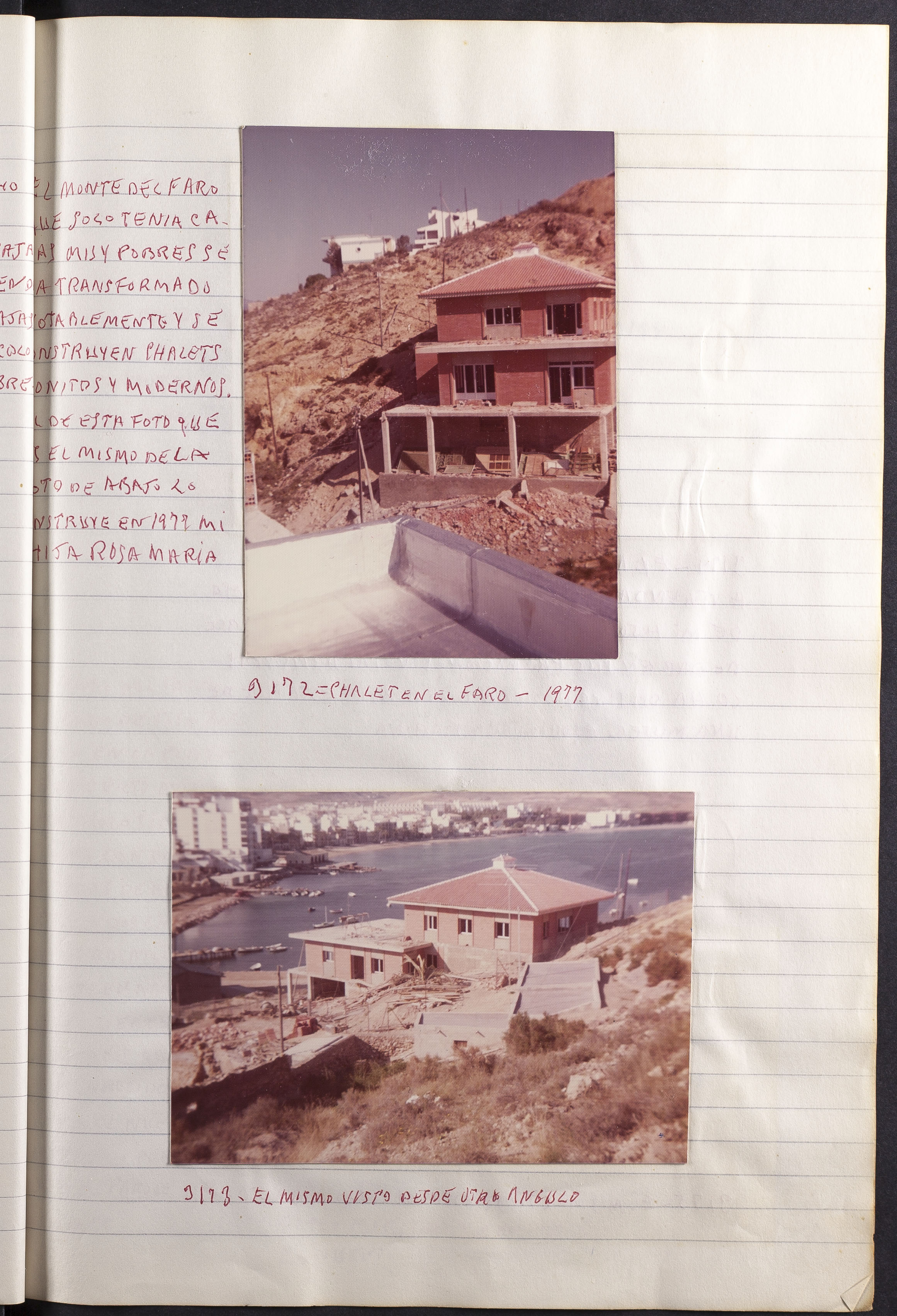Comentario de la fotografía 3172: EL MONTE DEL FARO QUE SOLO TENÍA CASAS MUY POBRES SE HA TRANSFORMADO NOTABLEMENTE Y SE CONSTRUYEN CHALETS BONITOS Y MODERNOS. EL DE ESTA FOTO QUE ES EL MISMO DE LA FOTO DE ABAJO LO CONSTRUYE EN 1977 MI HIJA ROSA MARÍA.