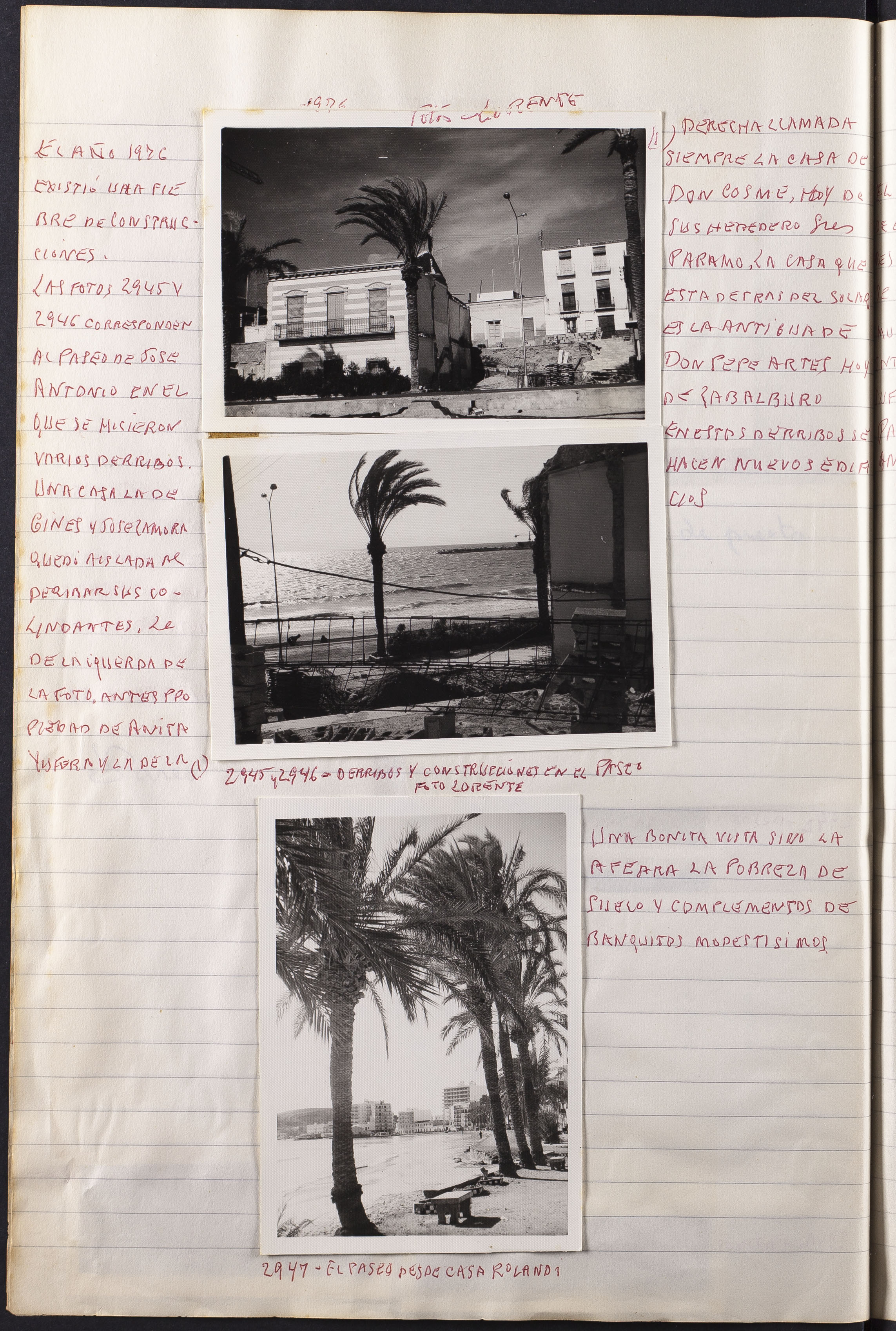 Comentario de las fotografías 2945 y 2946: EL AÑO 1976 EXISTIÓ UNA FIEBRE DE CONSTRUCCIONES. LAS FOTOS 2945 Y 2946 CORRESPONDEN AL PASEO DE JOSÉ ANTONIO EN EL QUE SE HICIERON VARIOS DERRIBOS. UNA CASA LA DE GINÉS Y JOSÉ ZAMORA QUEDÓ AISLADA AL DERRIBAR SUS COLINDANTES, LA DE LA IZQUIERDA DE LA FOTO, ANTES PROPIEDAD DE ANITA YÚFERA Y LA DE LA DERECHA LLAMADA SIEMPRE LA CASA DE CON COSME, HOY DE SUS HEREDEROS SRES. PÁRAMO, LA CASA QUE ESTÁ DETRÁS DEL SOLAR ES LA ANTIGUA DE DON PEPE ANTES HOY DE ZABALBURU. EN ESTOS DERRIBOS SE HACEN NUEVOS EDIFICIOS.
