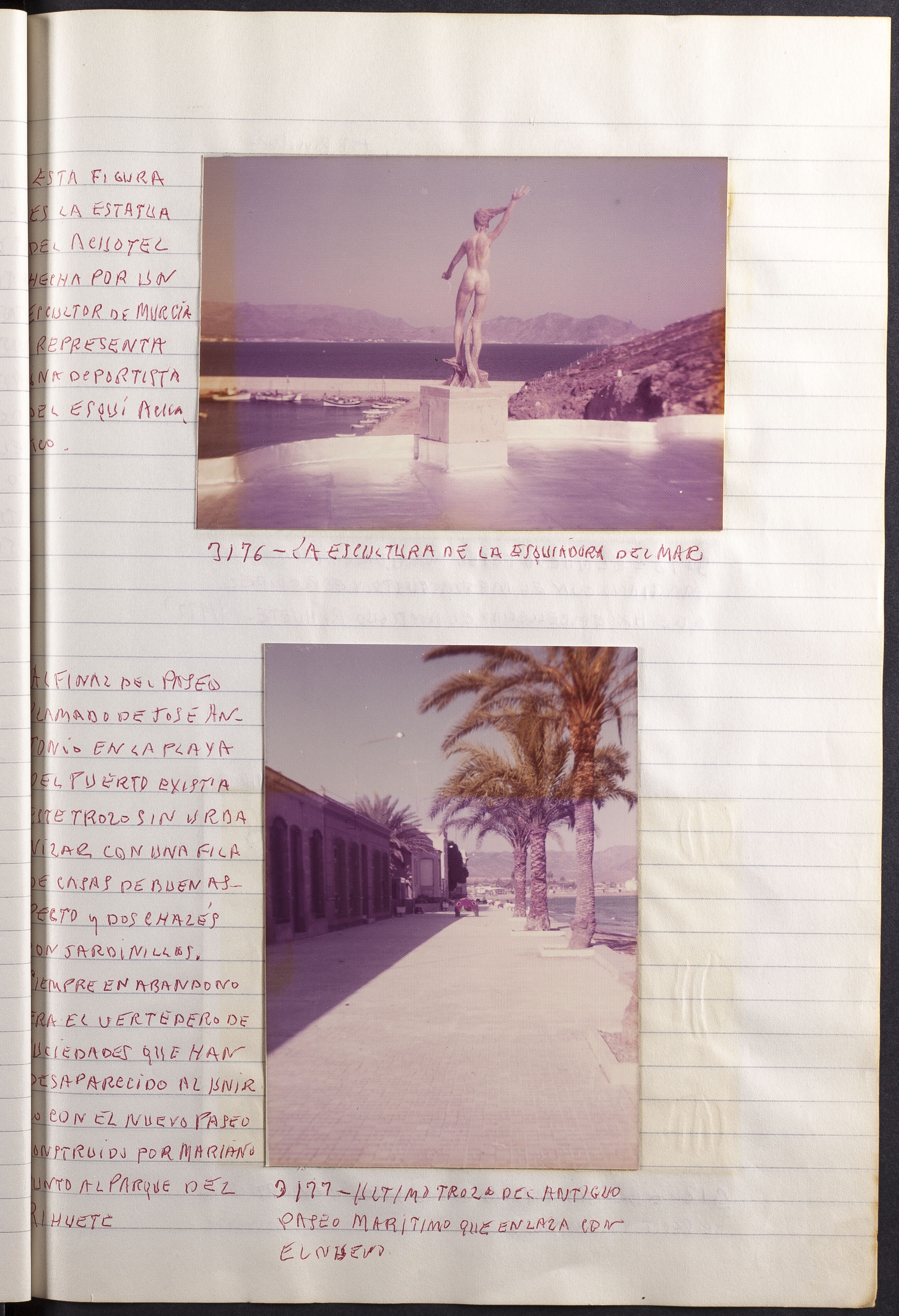 Papel con información manuscrita a bolígrafo tamaño 22 x31 cm. Incluye fotografías poliocromas en diferentes tamaños que se especifican en el Alcance y contenido.