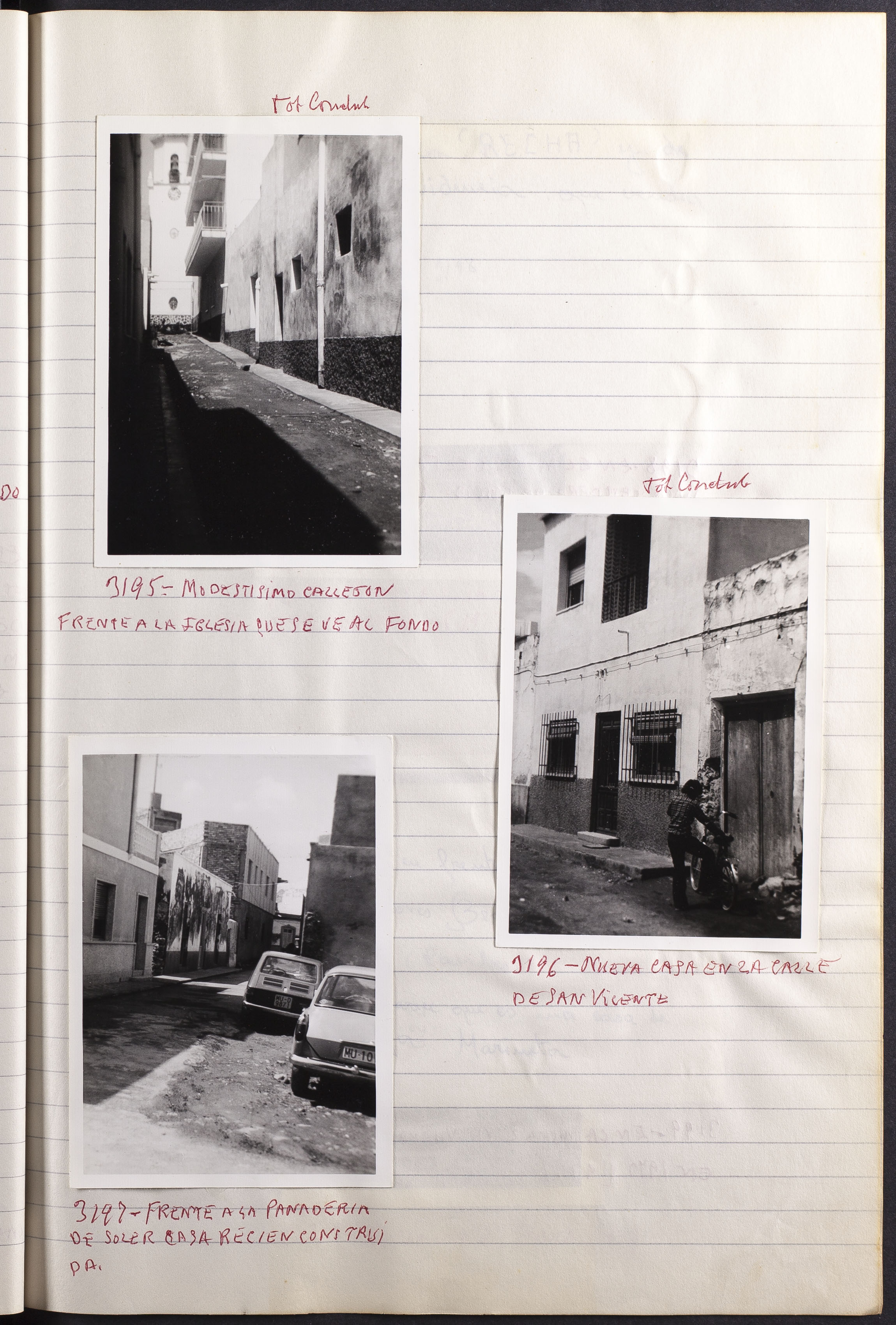 Papel con información manuscrita a bolígrafo tamaño 22 x31 cm. Incluye fotografías monocromas en diferentes tamaños que se especifican en el Alcance y contenido.