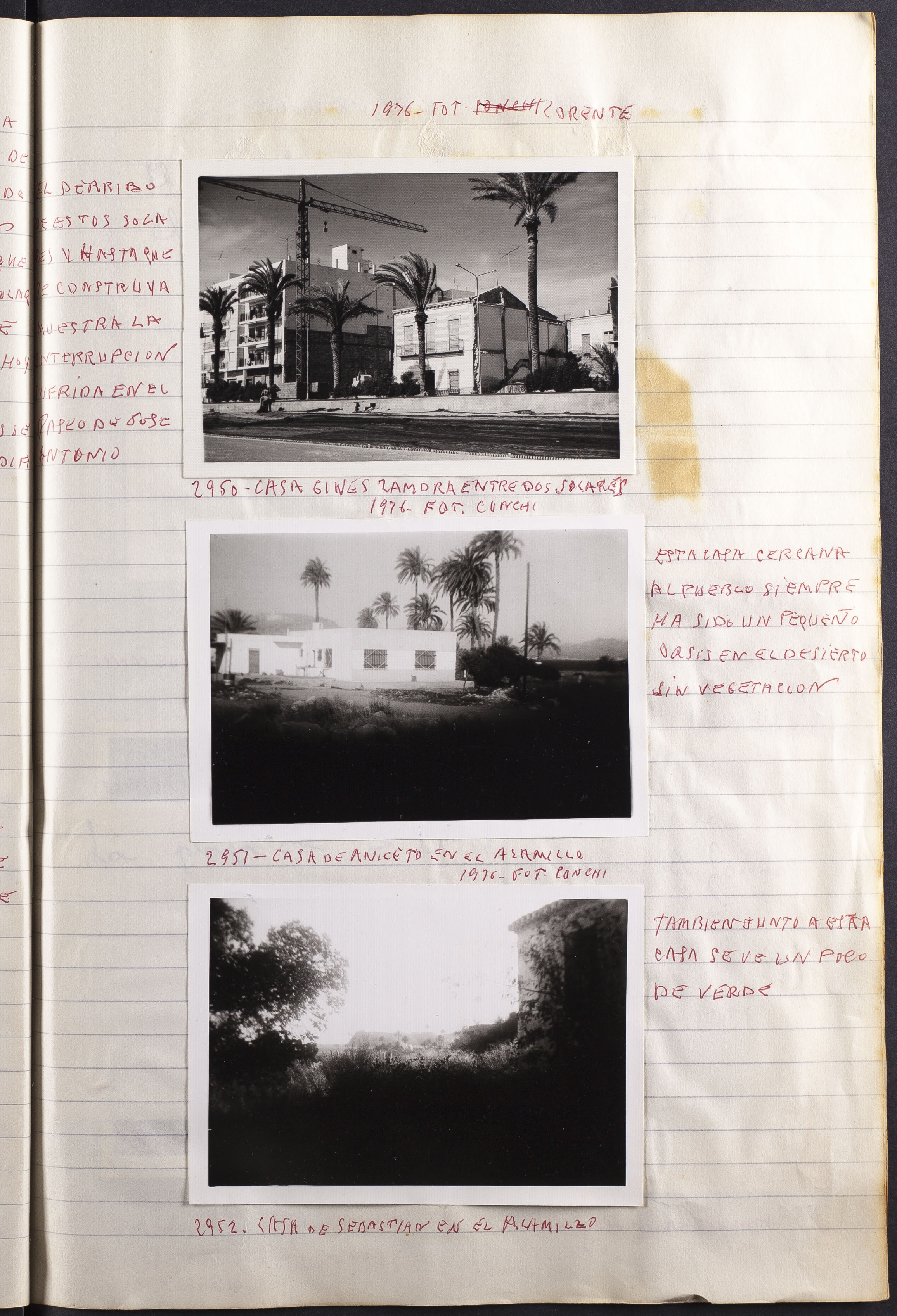 Papel con información manuscrita a bolígrafo tamaño 22 x31 cm. Incluye fotografías monocromas en diferentes tamaños que se especifican en el Alcance y contenido.