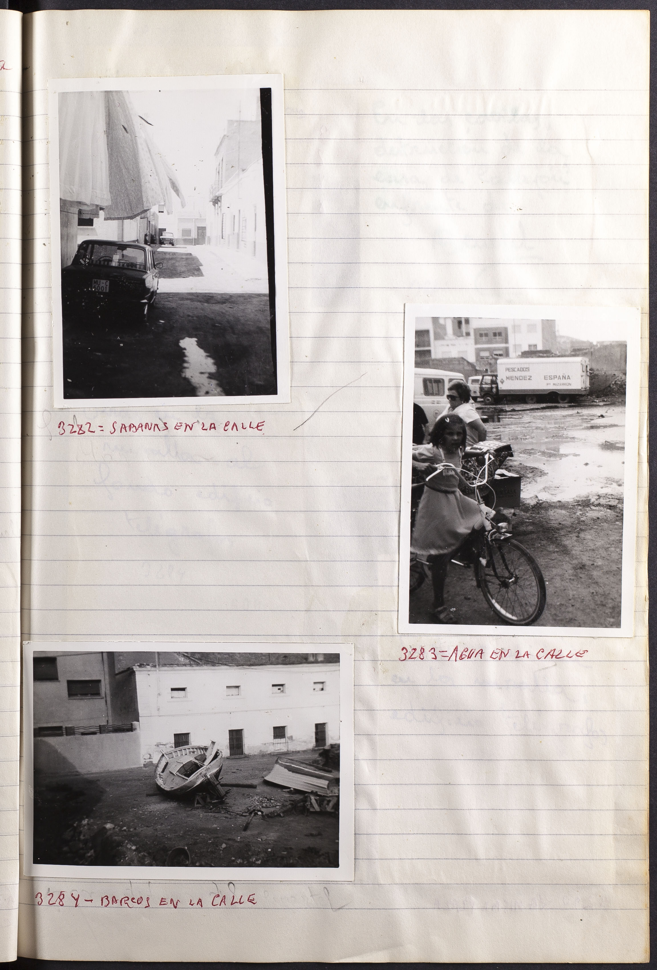Papel con información manuscrita a bolígrafo tamaño 22 x31 cm. Incluye fotografías monocromas en diferentes tamaños que se especifican en el Alcance y contenido.