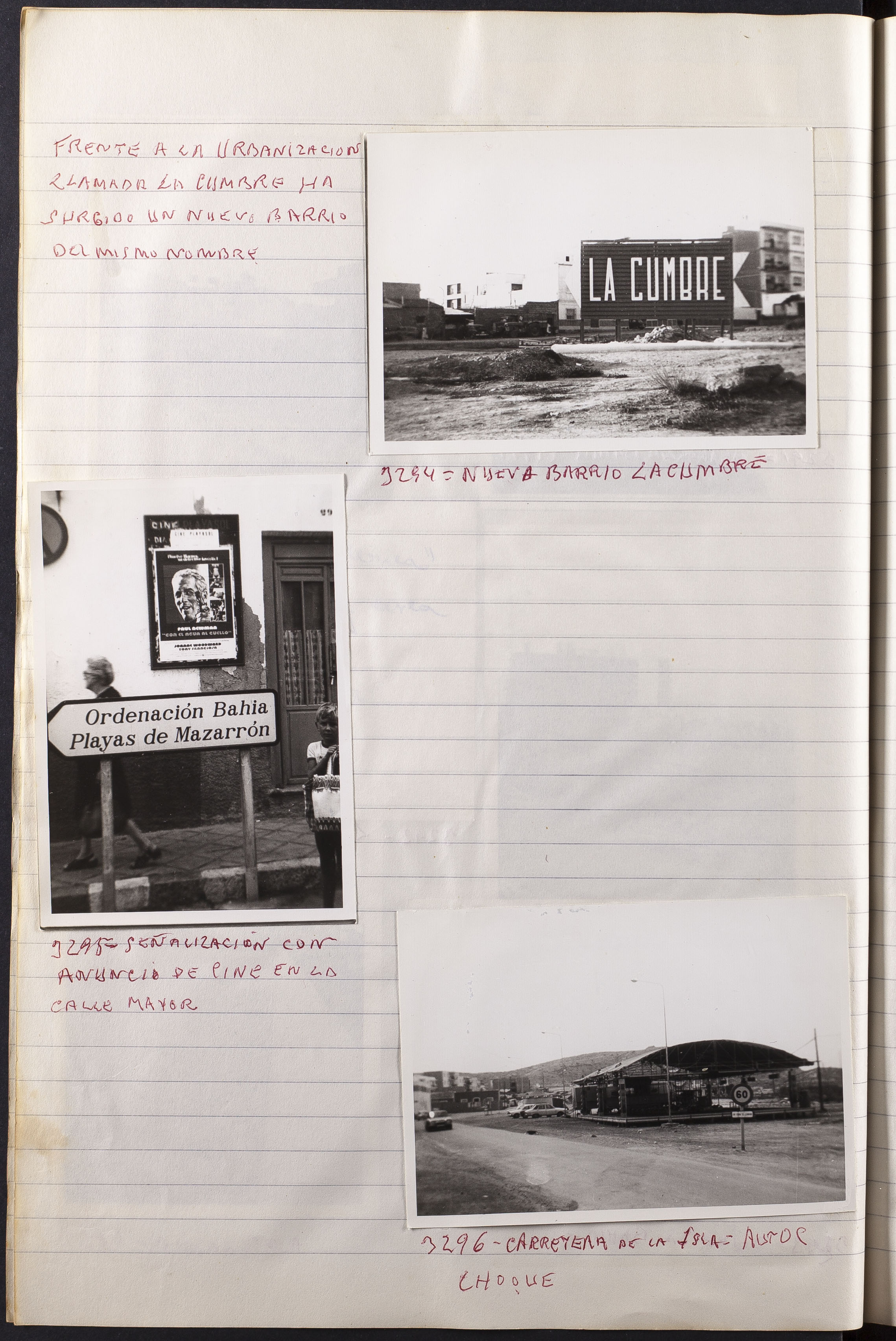- 1977?Papel con información manuscrita a bolígrafo tamaño 22 x31 cm. Incluye fotografías monocromas en diferentes tamaños que se especifican en el Alcance y contenido. (Creación)