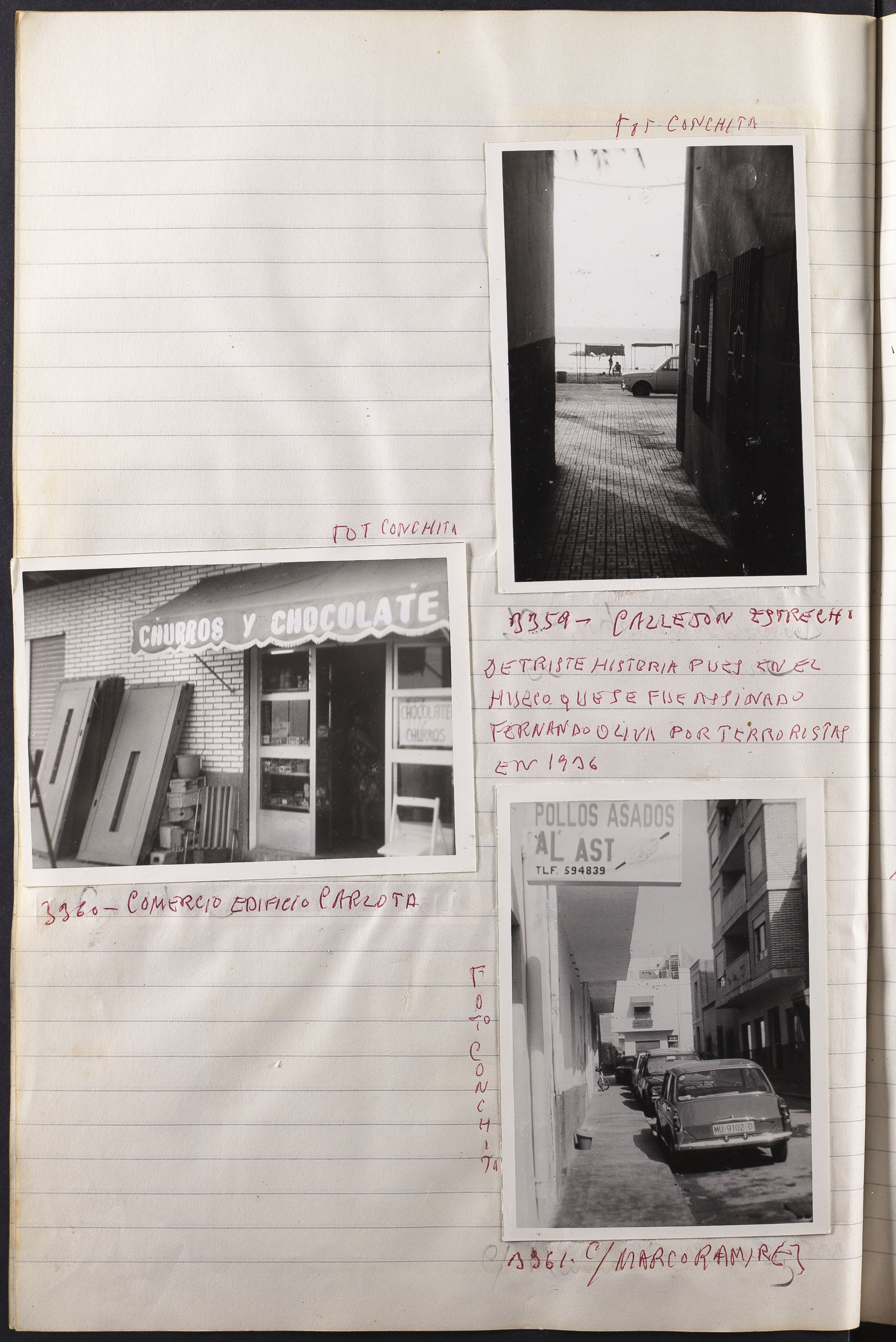 Fotografía 3361: C/MARCO RAMÍREZ. Figura escrito a mano el origen de la fotografía: Fot. Conchita. Dimensiones: 10,5 x 7,5 cm