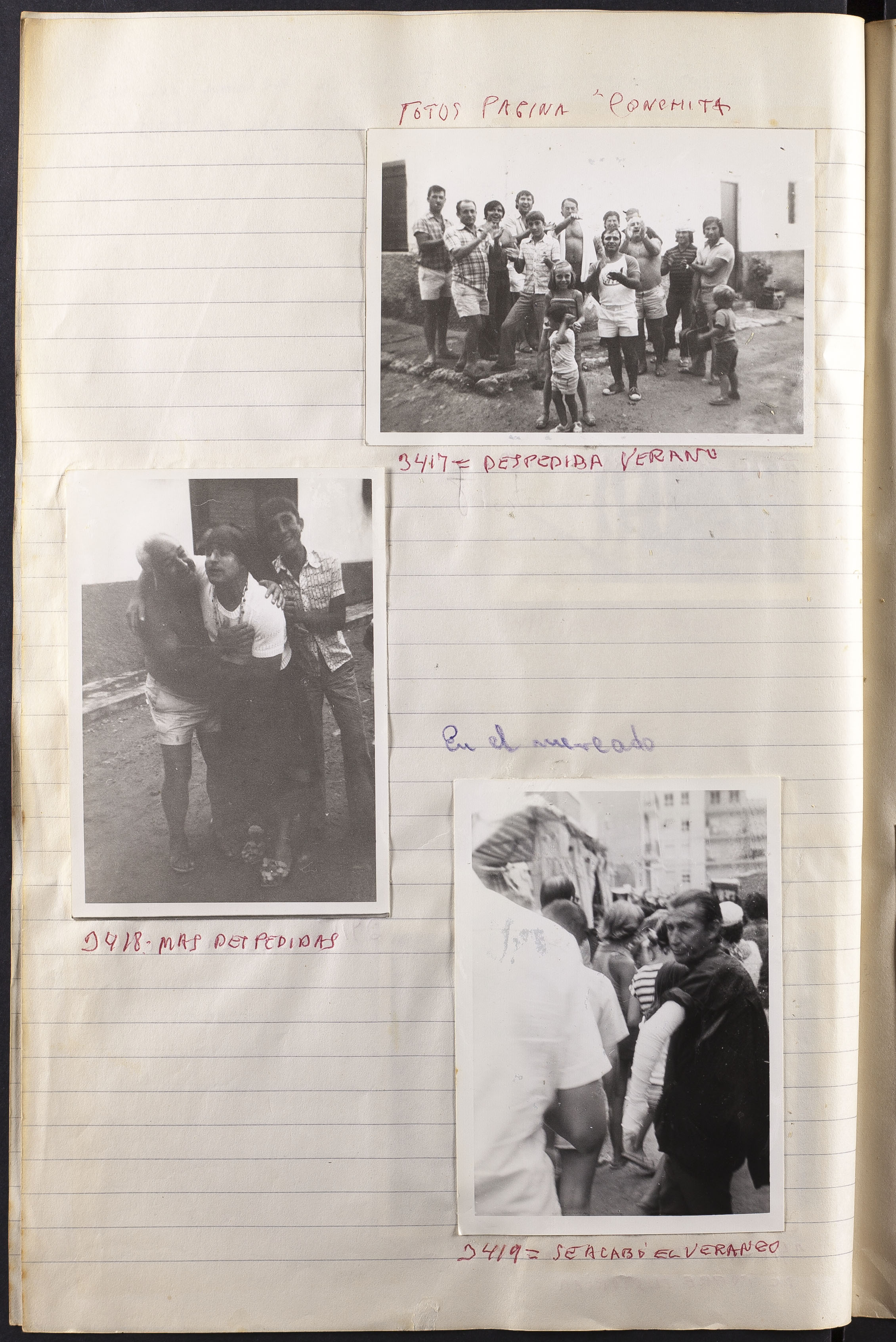 Papel con información manuscrita a bolígrafo tamaño 22 x31 cm. Incluye fotografías monocromas en diferentes tamaños que se especifican en el Alcance y contenido.